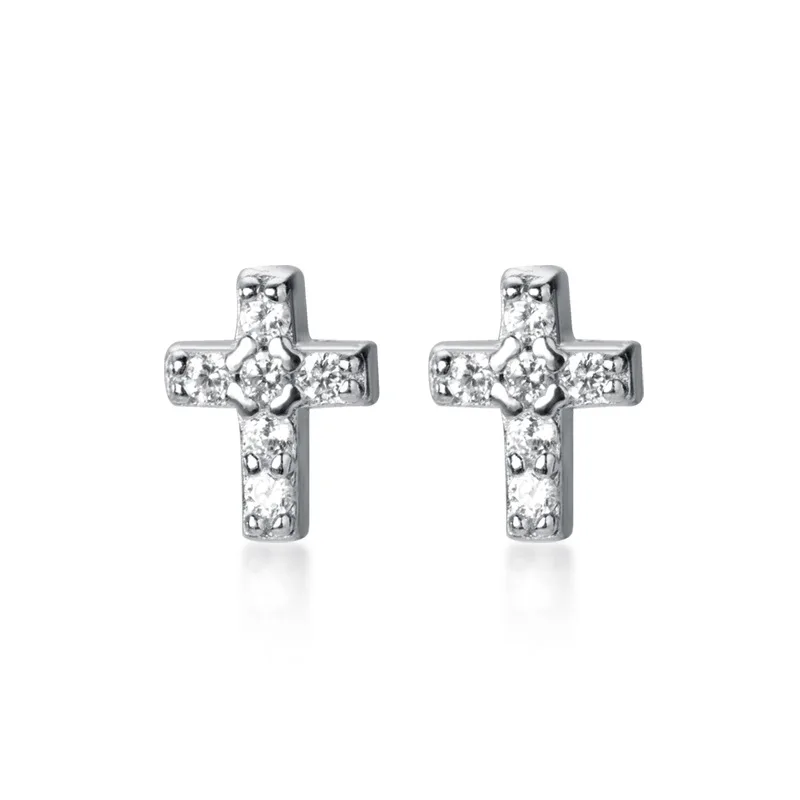 LKO Настоящее серебро 925 пробы 100% Кристалл Серьги-гвоздики с крестом для модных женщин и девочек Ювелирные изделия для вечеринок Модные аксессуары для ушей