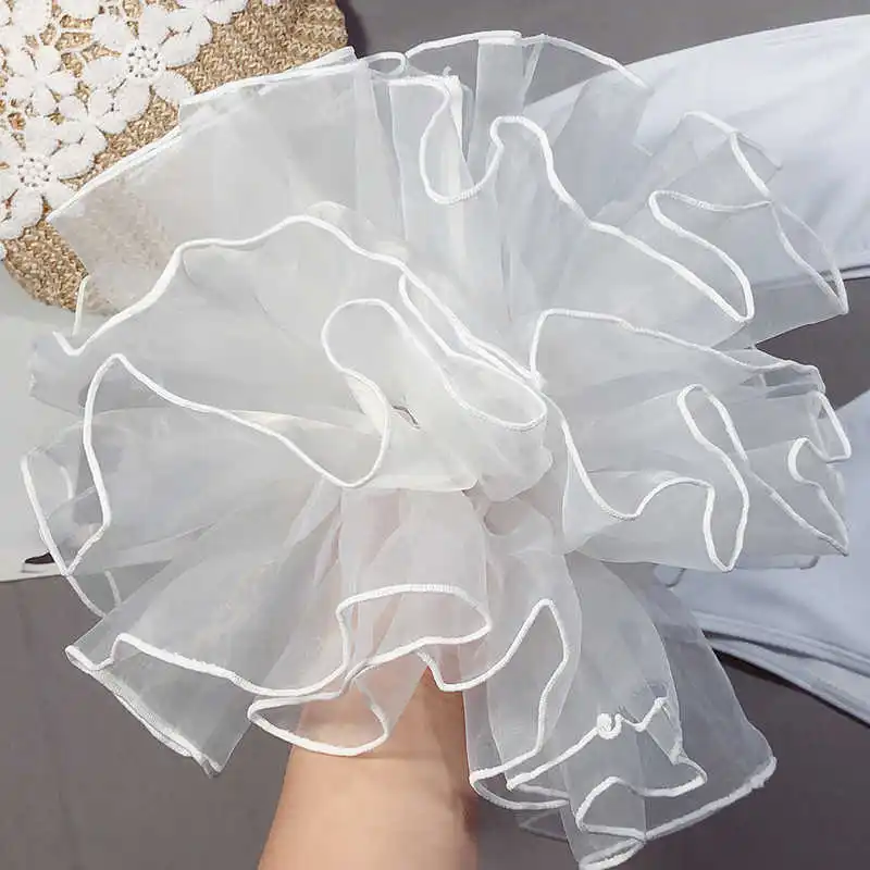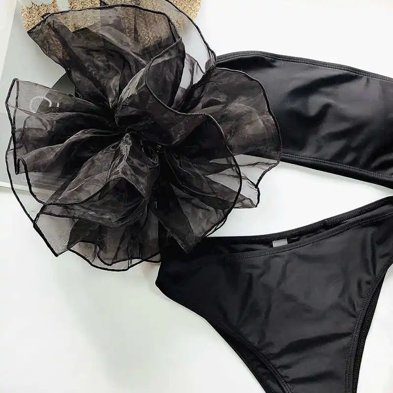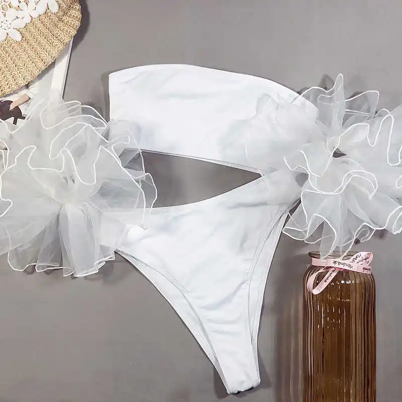 Купальник-бикини женский сетчатый с оборками и высокой талией