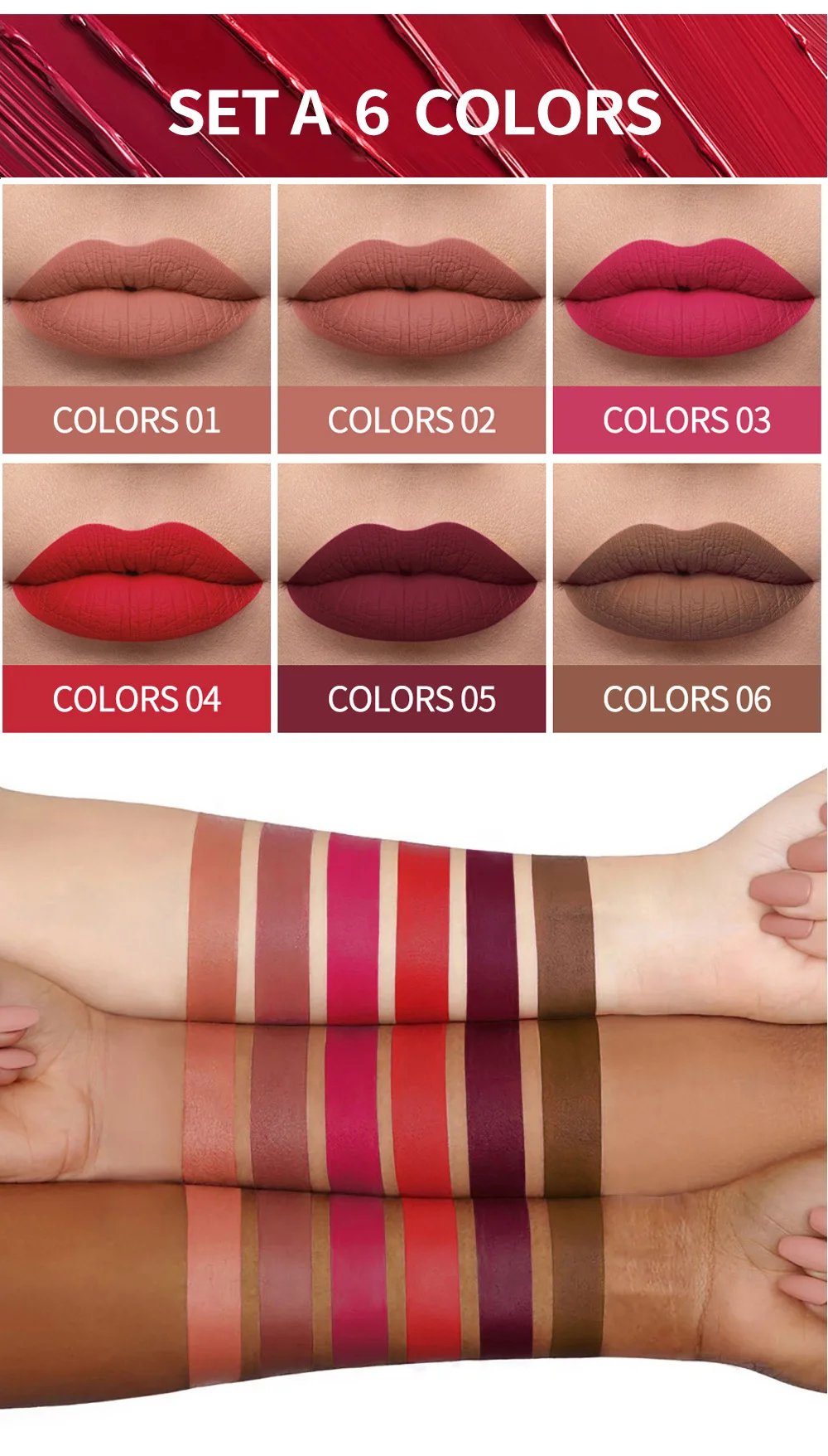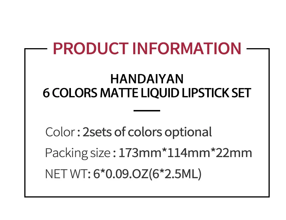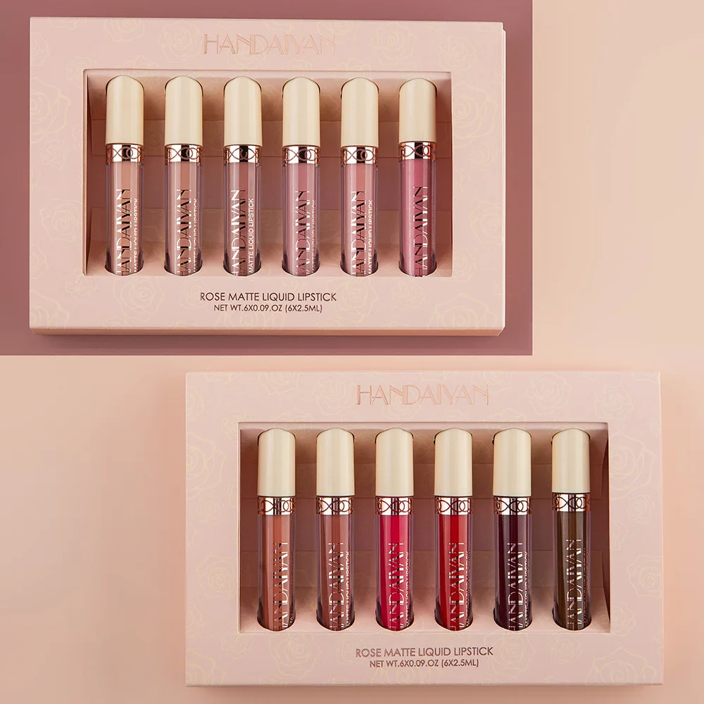 Набор для макияжа HANDAIYAN, Матовая жидкая помада, набор 6 цветовк...