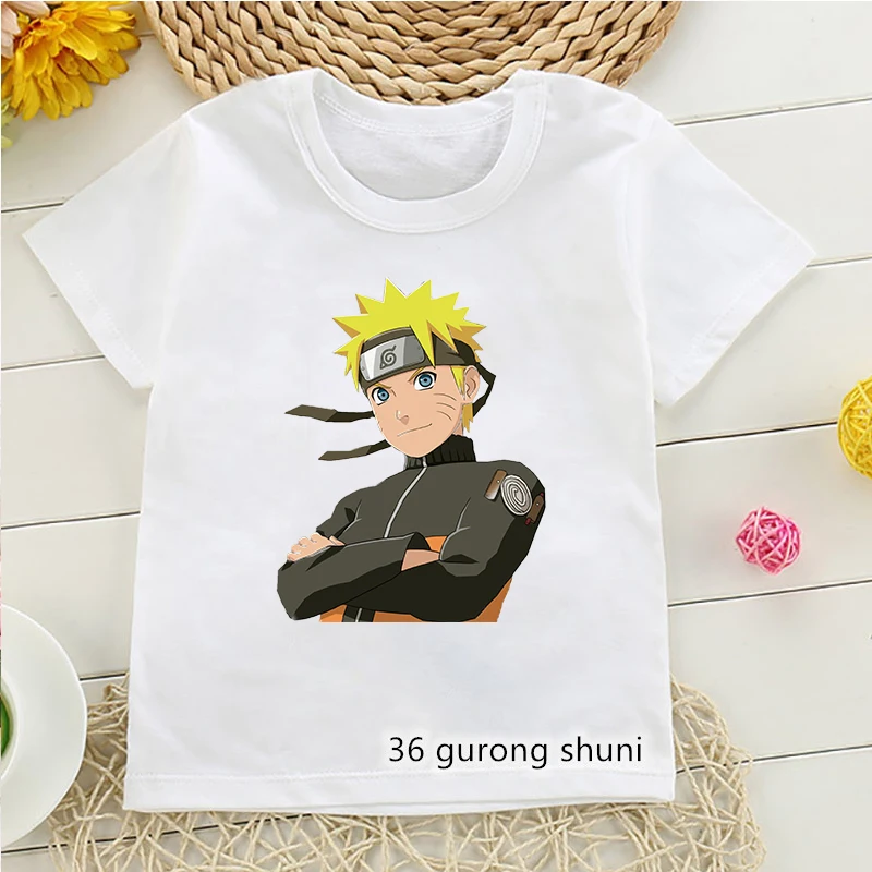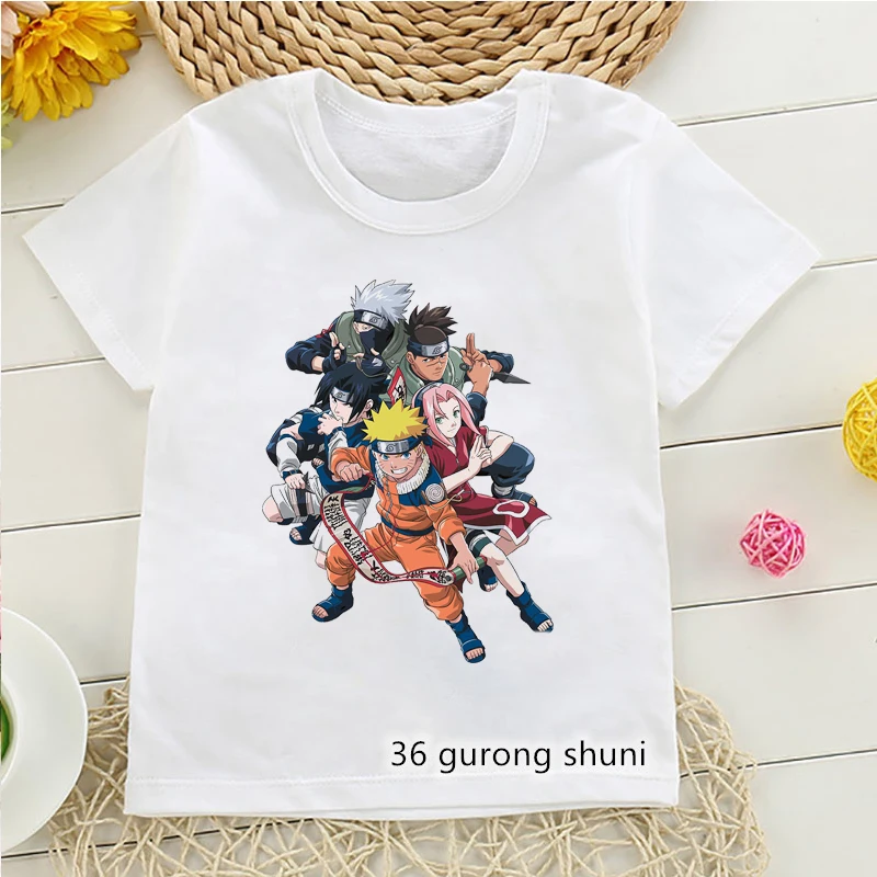 Футболка для мальчиков, белая рубашка с мультяшным японским аниме с...