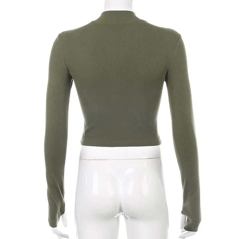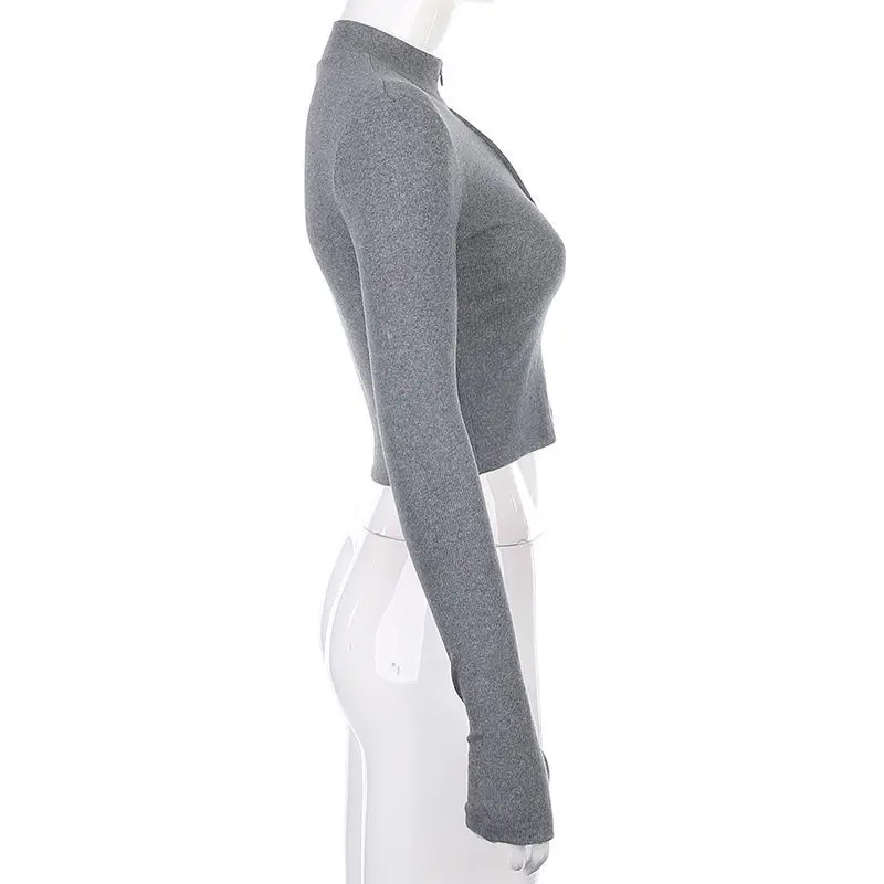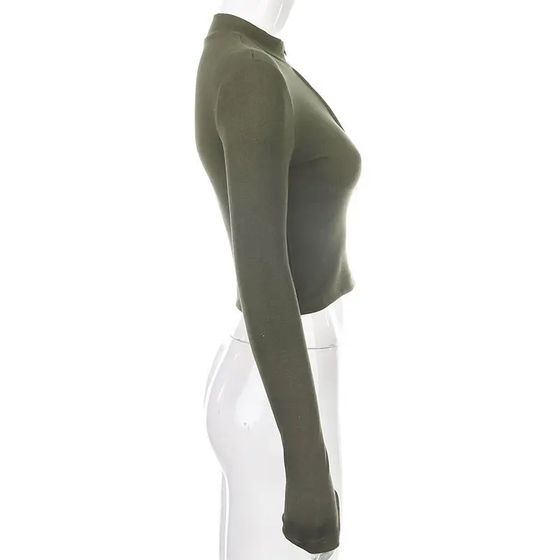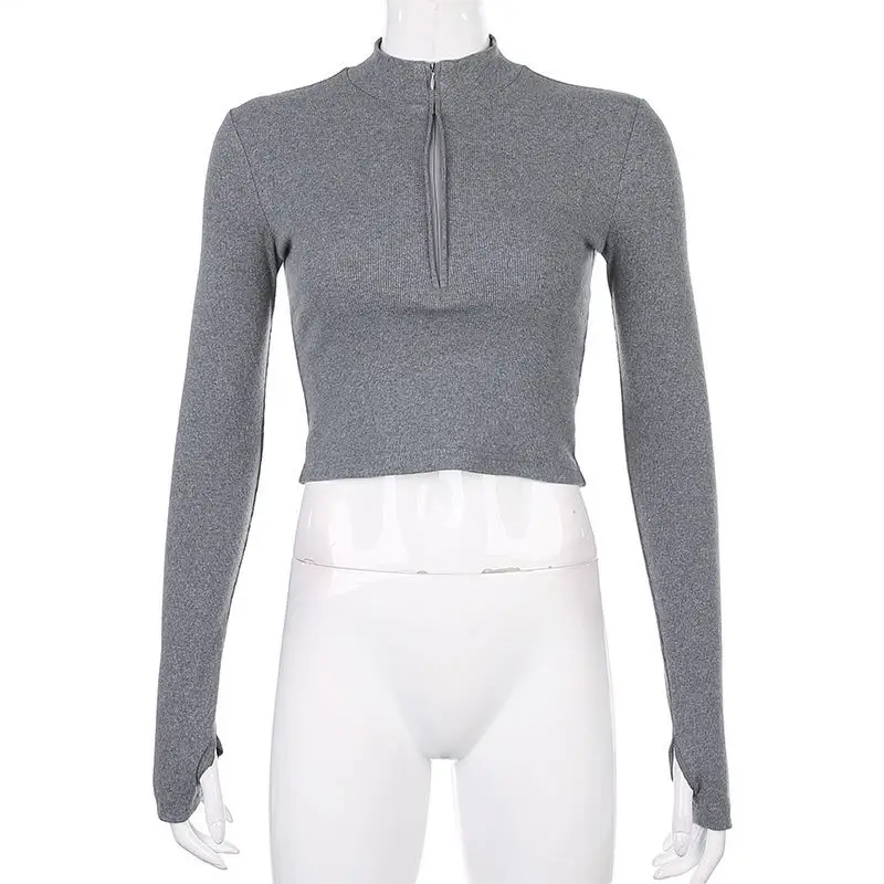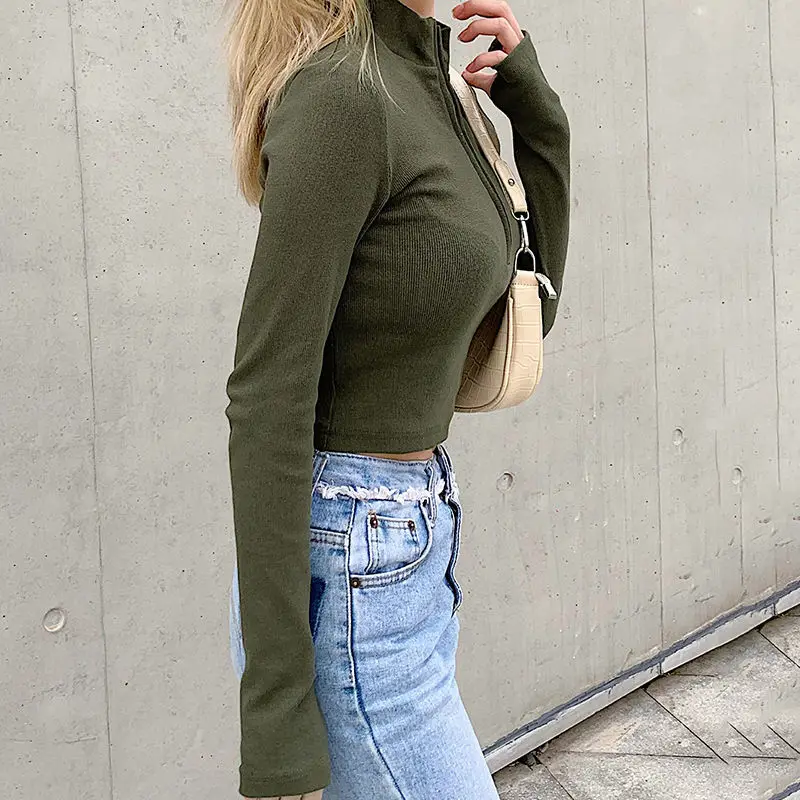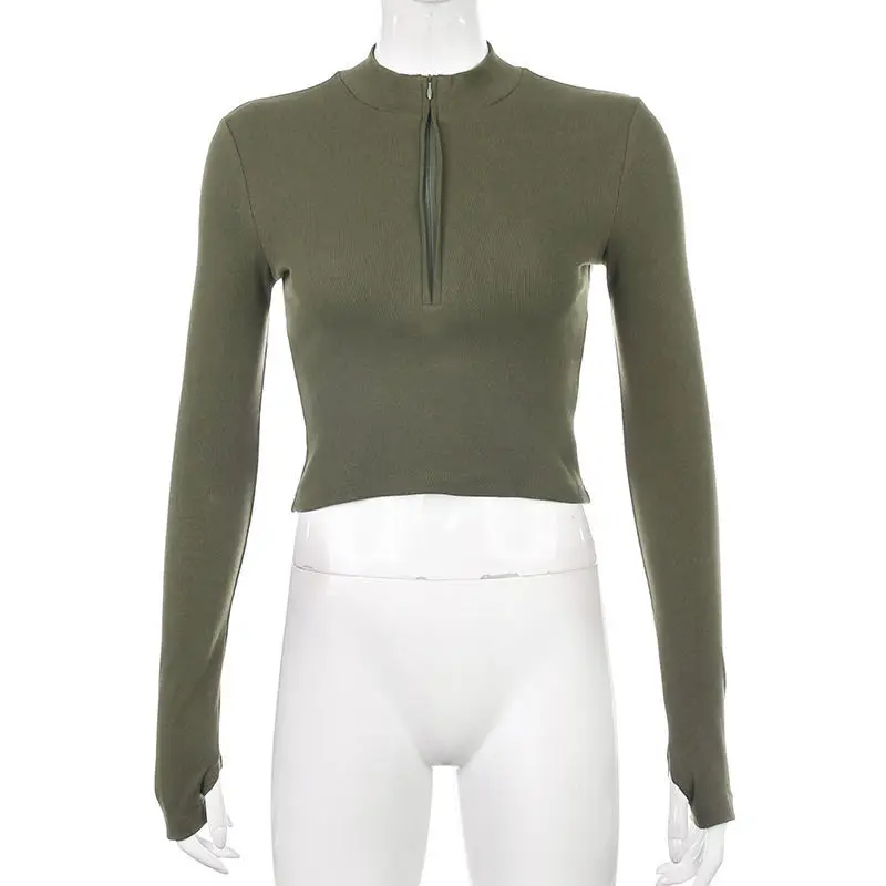 Женская футболка на молнии, с коротким воротником и длинным рукавом