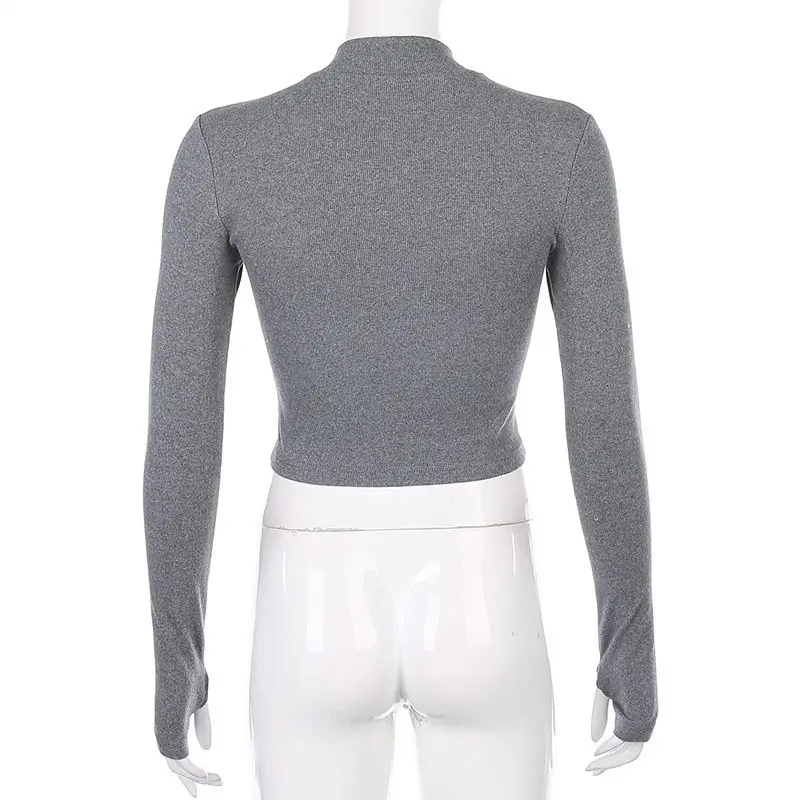 Женская футболка, сезон весна-осень, одежда, ребристый ТРИКОТАЖНЫЙ УКОРОЧЕННЫЙ ТОП с длинным рукавом, дизайнерская футболка на молнии, привлекательные женские облегающие черные и белые топы