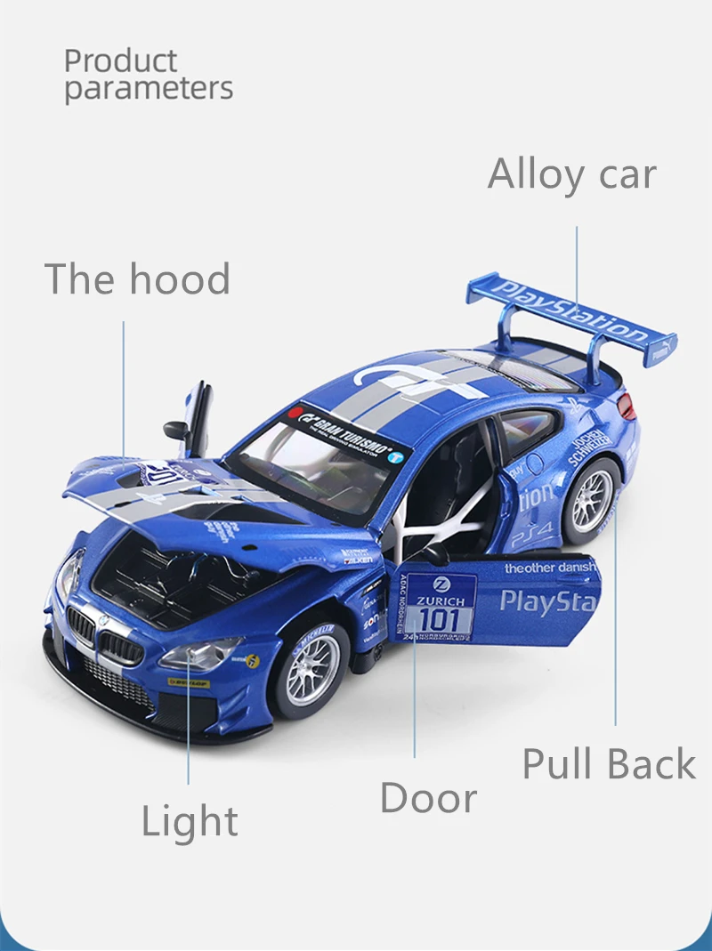 Модель гоночного автомобиля BMW M6 GT3 из сплава, литой металлический игрушечный автомобиль, модель автомобиля, коллекция имитации звука и света, детская игрушка в подарок, 132