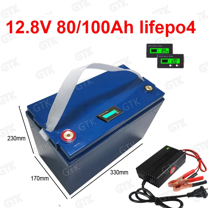 Литиевая батарея GTK lifepo4, 12,8 В, 12 В, инвертор для лодки А ч, 80 А ч, bluetooth, BMS, приложение для караванов, рыб, портативное зарядное устройство RV + 10A