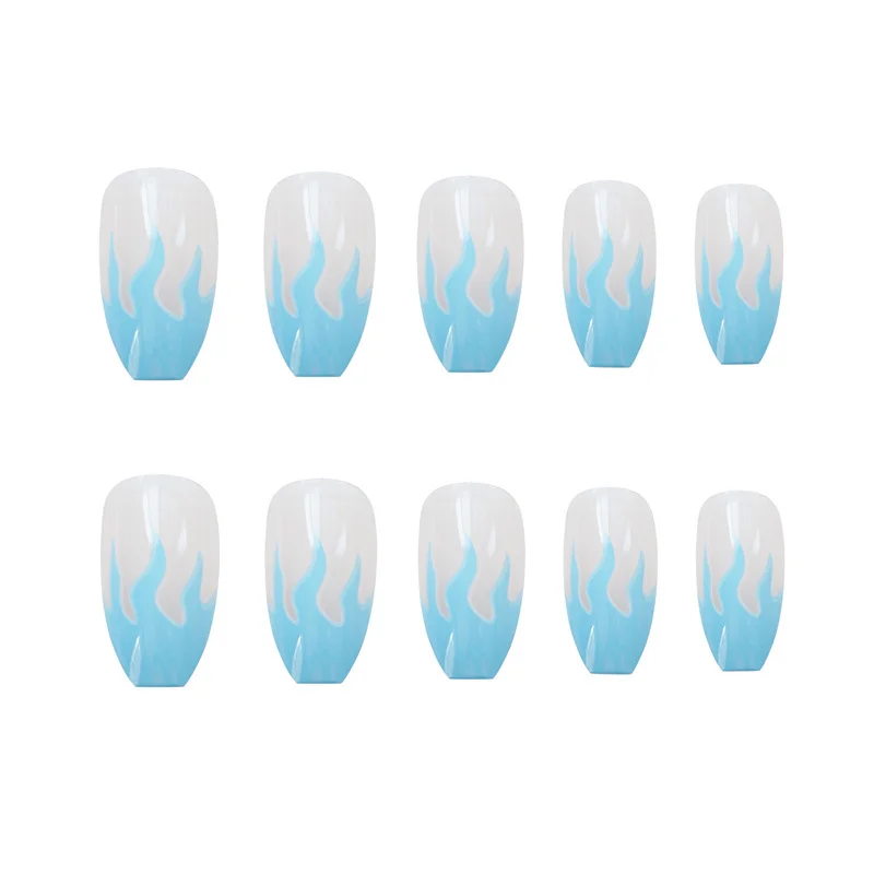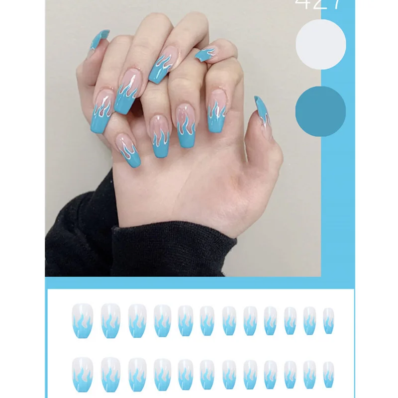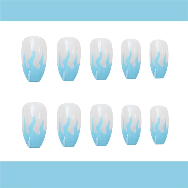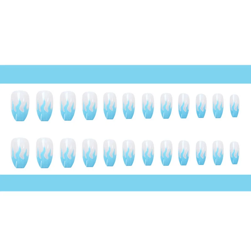 24 шт Съемные накладные ногти ноские милые французские накладные ногти полное покрытие синие Пламенные ногти кончики для украшения ногтей арт, наклейки для ногтей