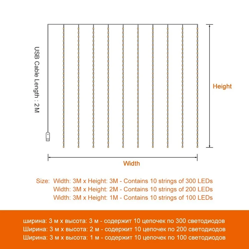 СВЕТОДИОДНАЯ Гирлянда-занавеска на окно, 3 м