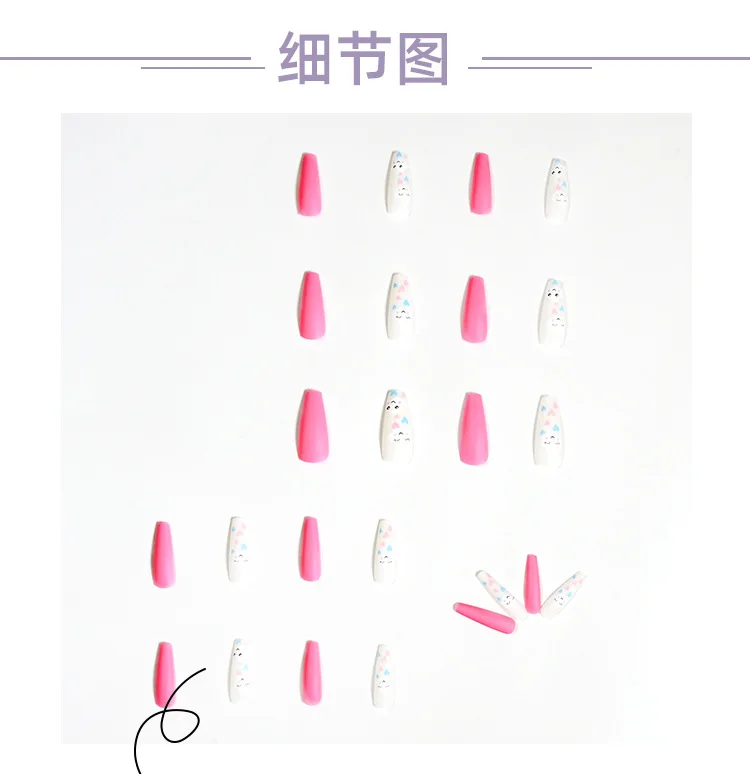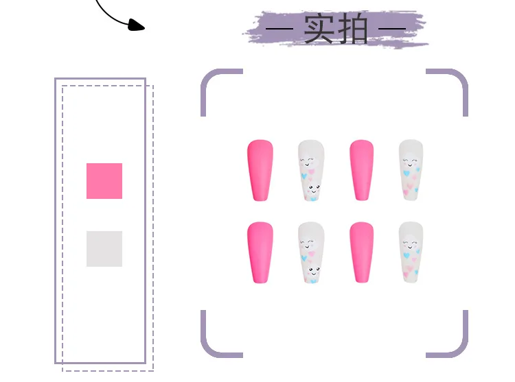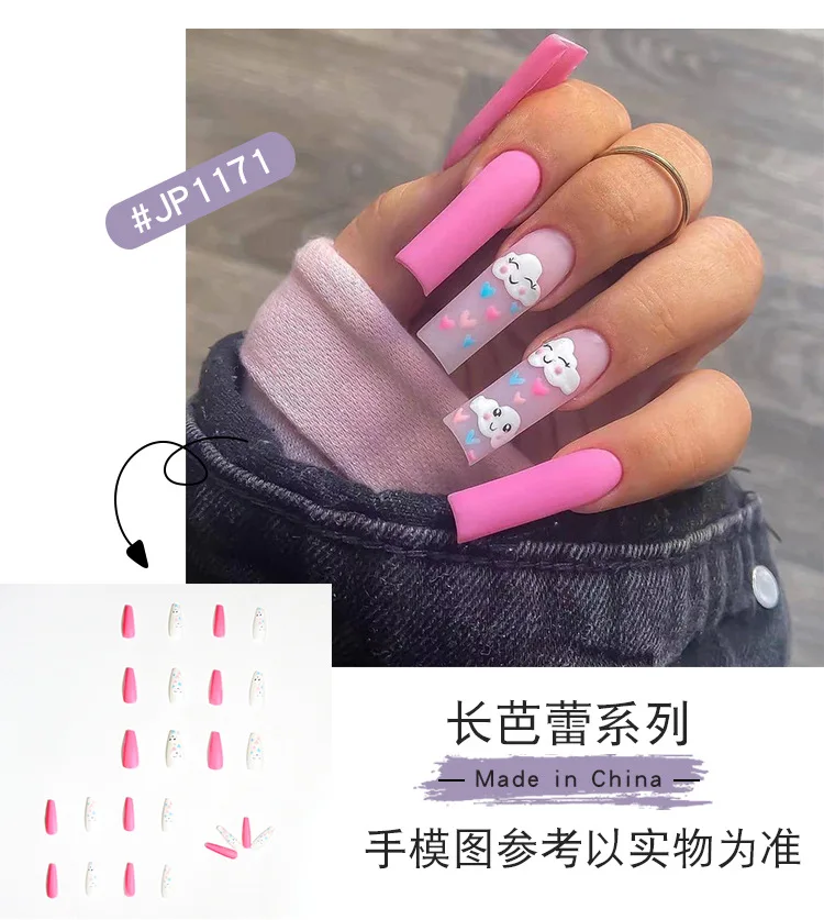 24 шт., накладные ногти на шпильке, балерины, длинные облака, смайлик, полное покрытие, накладные ногти, акриловая наклейка с клеем, накладные ногти