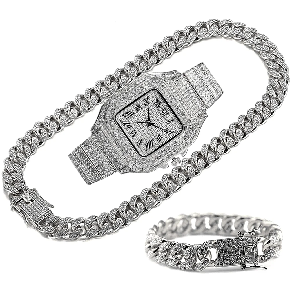 Роскошные часы Майами из кубинской цепи со сверкающими звеньями, ро...