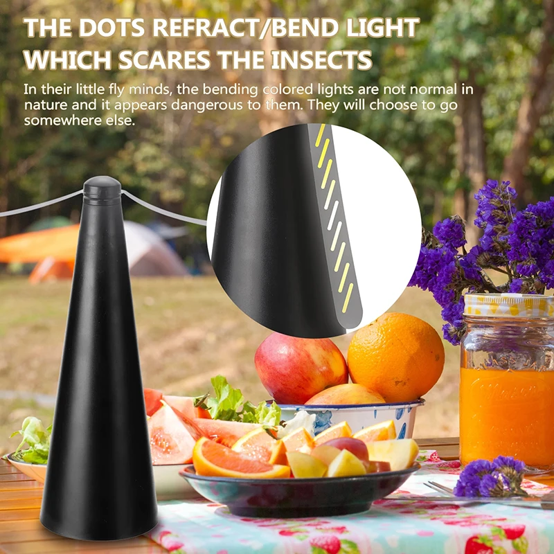 Точка преломления/изгиб светильник, который пугает насекомых. В своих маленьких умах изгибы цветных огней не являются нормальными по своей природе, и они кажутся опасными для них. Они решат отправиться в другое место.
