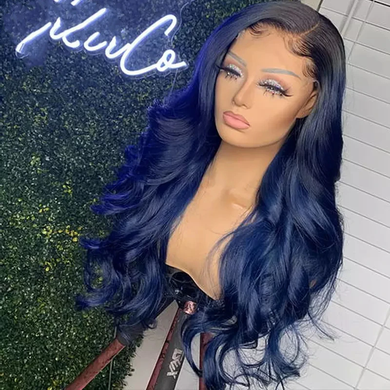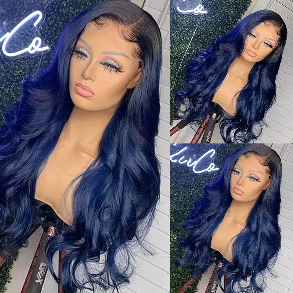 Темно-синий волнистый передний парик на сетке, парики из человеческих волос, бразильские волосы Remy 180%, Омбре 1Bсиние волнистые парики на сетке для черных женщин, предварительно выщипанные