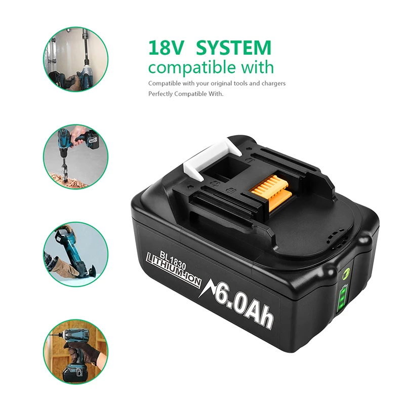 Посылка Содержание: 1 шт. * новейшая 18V 6000 мА/ч, литий-ионный аккумулятор Перезаряжаемые Батарея для Makita Мощность инструменты