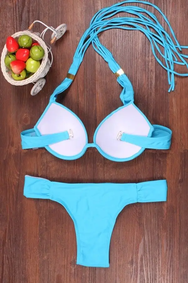Женский сексуальный купальный костюм, однотонный бюстгальтер пуш-ап с мягкими чашечками и трусики с низкой талией, комплект бикини, женский купальник, купальник