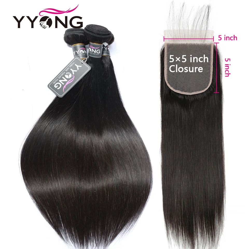 Пряпряди из 100% натуральных малазийских волос YYong, 14-22 дюйма, 5x5, прямые, Реми, с застежкой