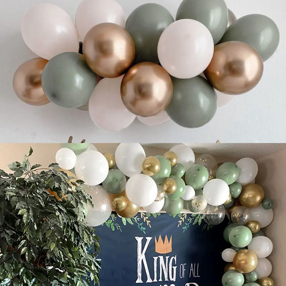 5 дюймов латексный воздушный шар белого * 3610 дюймов латексный воздушный шар белого * 1218 дюймов латексный шар белый * 25 дюймов латексный шар цвет кожи * 510-дюймовая шпилька латексный воздушный шар цвет кожи * 25 дюймов латексный воздушный шар авокадо зеленый * 4010 дюймов латексный воздушный шар авокадо зеленый * 30 5 дюймов металлический шар золотой * 1512 дюймовая металлический шар золотой * 518 дюймов металлический шар золото * 218-дюймовый двухцветная шар * 1 (белый и безопасная для кожи ткань цвет)100 точек * 15 метров резиновая цепь двойное отверстие * 1