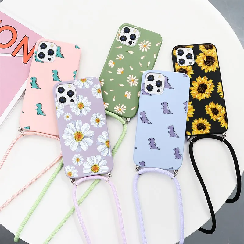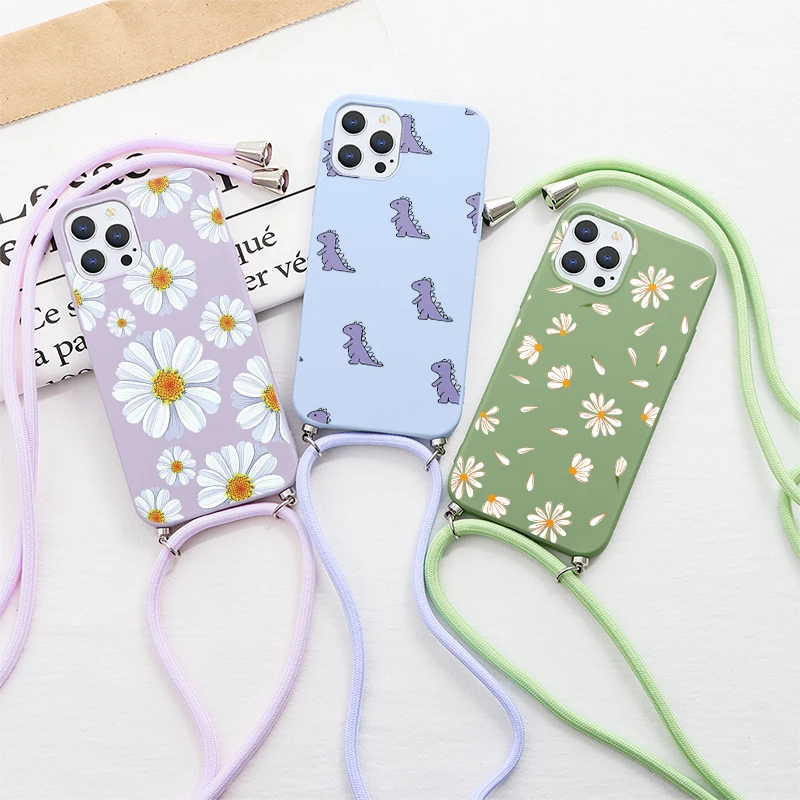 Милые Мультяшные чехлы с ожерельем и ремешком через плечо для iPhon...