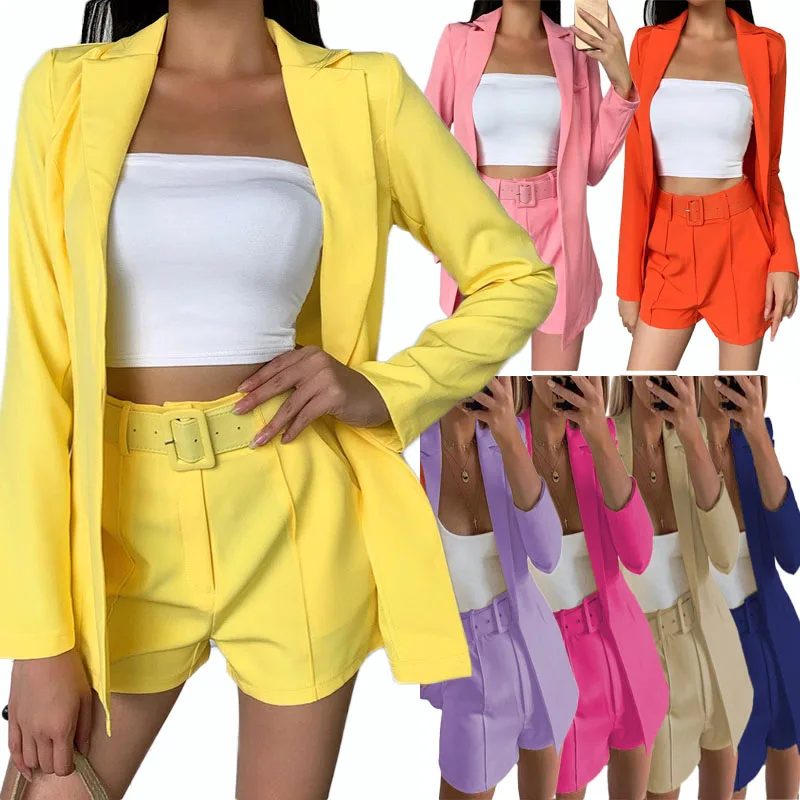 Женский офисный костюм из двух предметов, повседневный костюм с блейзером и шортами, лето-осень 2021