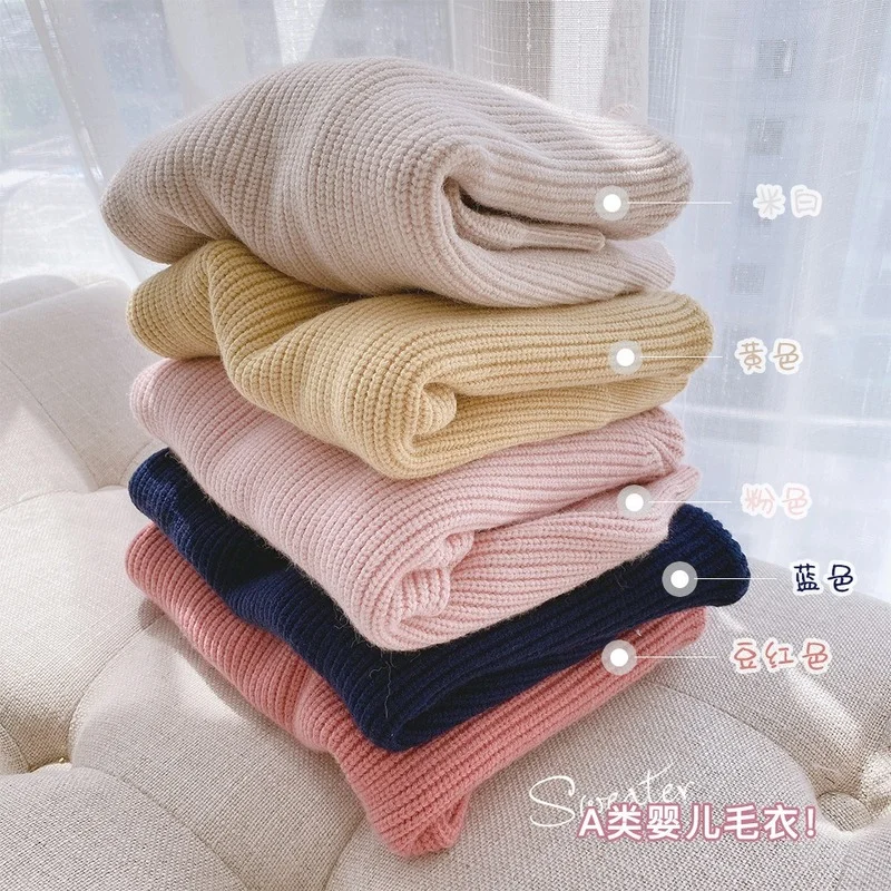 Вязаный свитер для мальчиков и девочек, Повседневный, осенне-зимний, однотонный, свободный, с круглым вырезом, с длинным рукавом, пуловер, От 0 до 6 лет