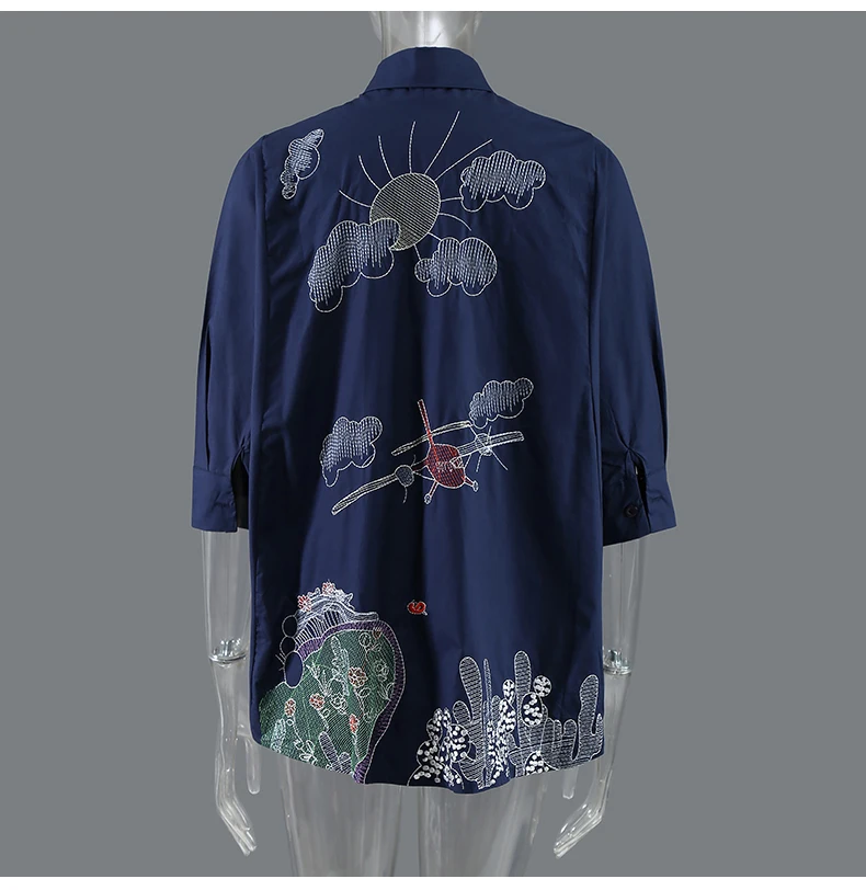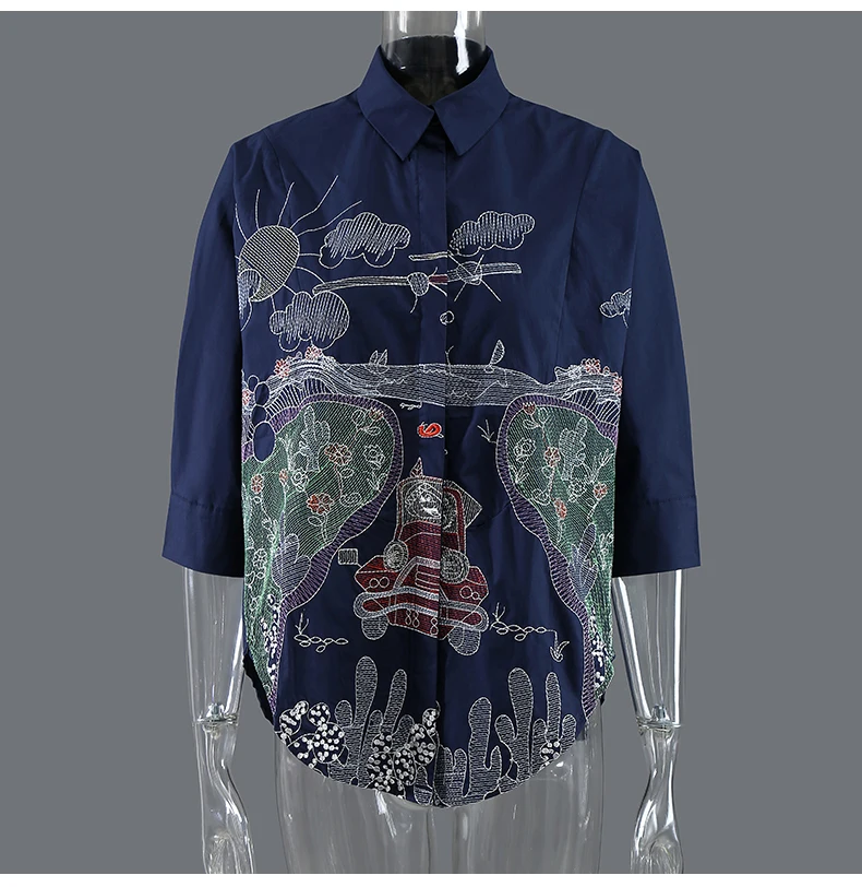 Новинка, женские летние дизайнерские синие лоскутные блузки большог...