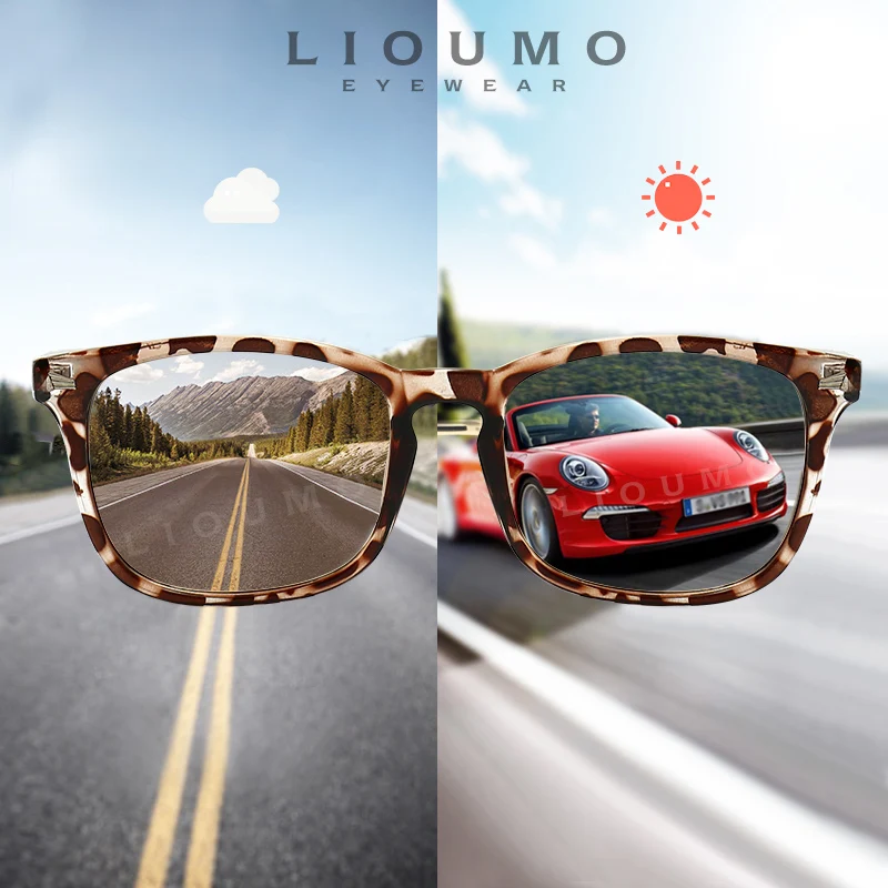 Мужские и женские фотохромные солнцезащитные очки LIOUMO, квадратны...