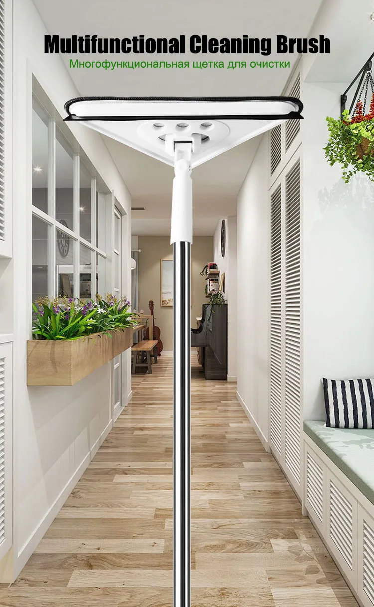 Швабра для мытья окон телескопическая, плоская Двухсторонняя щетка для мытья высоких стекол, многофункциональная щетка для уборки дома и кухни