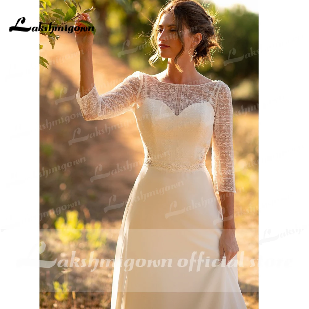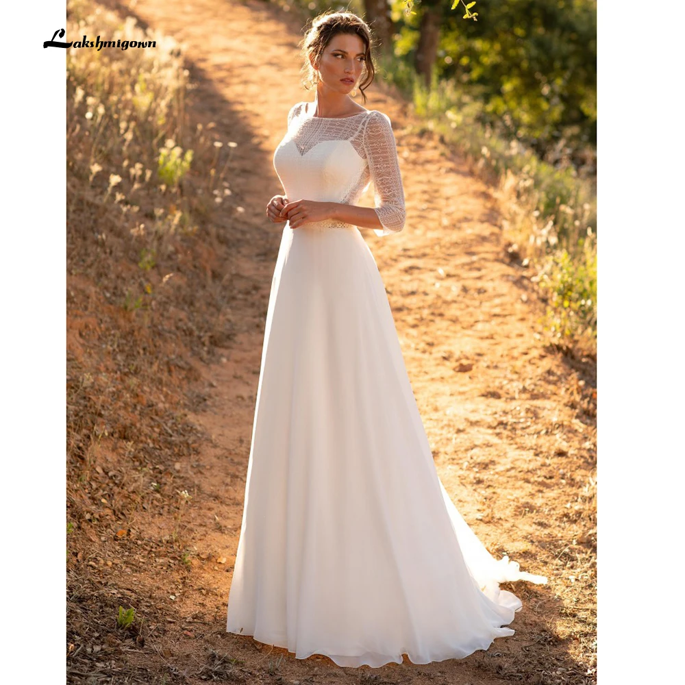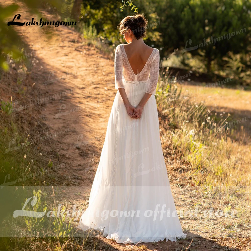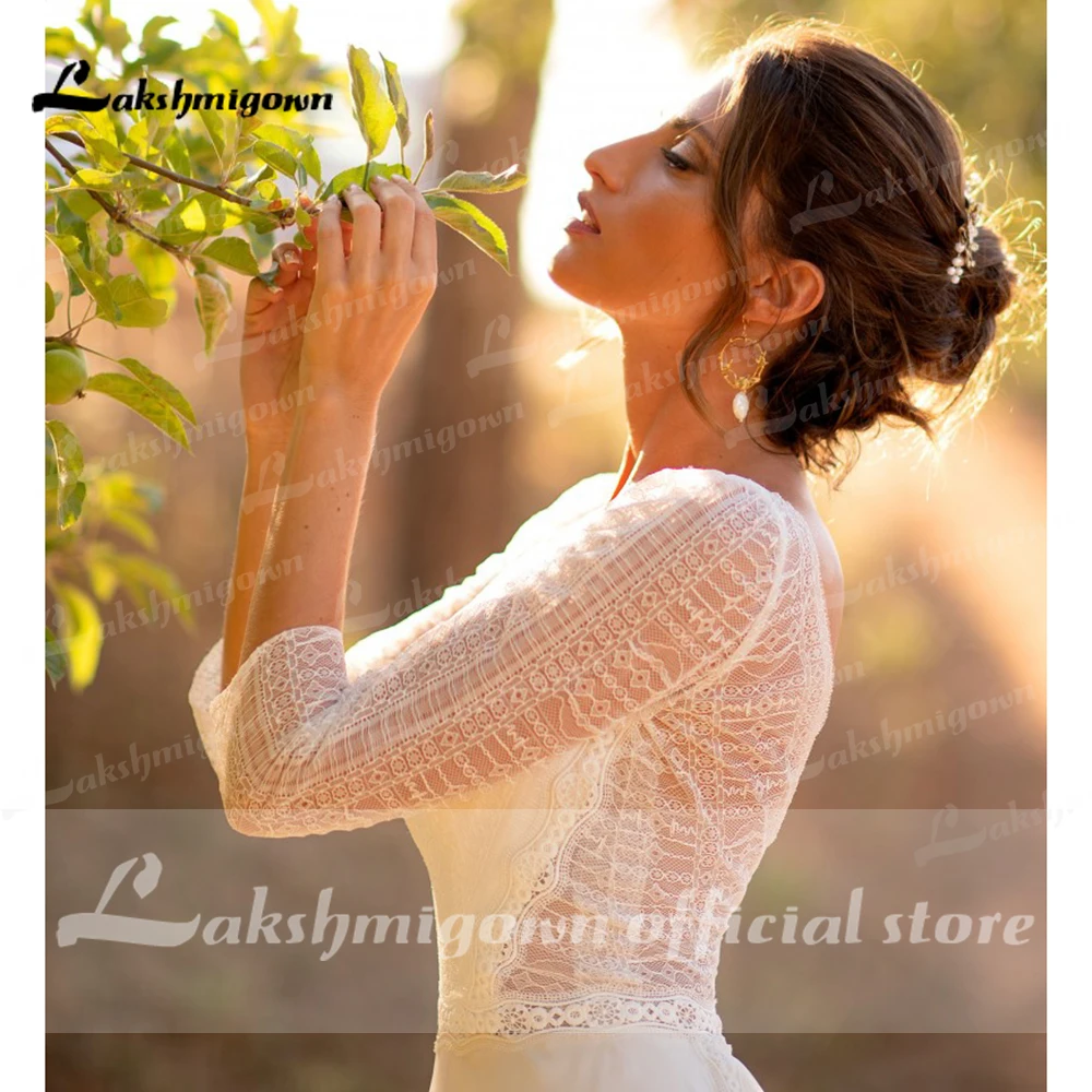 Кружевное шифоновое свадебное платье в стиле бохо, с длинным рукаво...