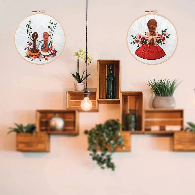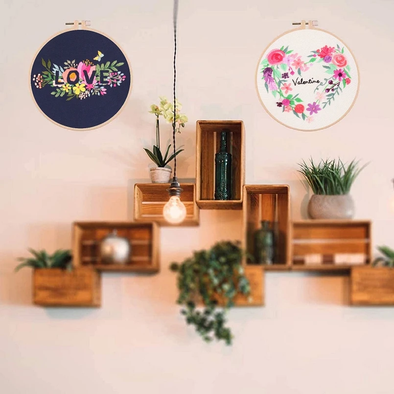 1 x ABS Регулируемый обруч с вышивкой (диаметр 20 см/8 дюймов)2 х Хлопок Классический резерв с рисунком (30x3 0 см/12x12 дюймов)2 набора мягких нитей вышивки4 x иглы для вышивки2 x Инструкция на английском языке