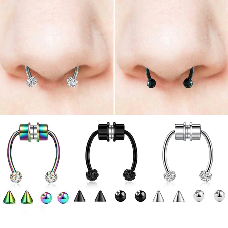 Кольцо в нос, из нержавеющей стали, с подковой, магнитное кольцо в ...