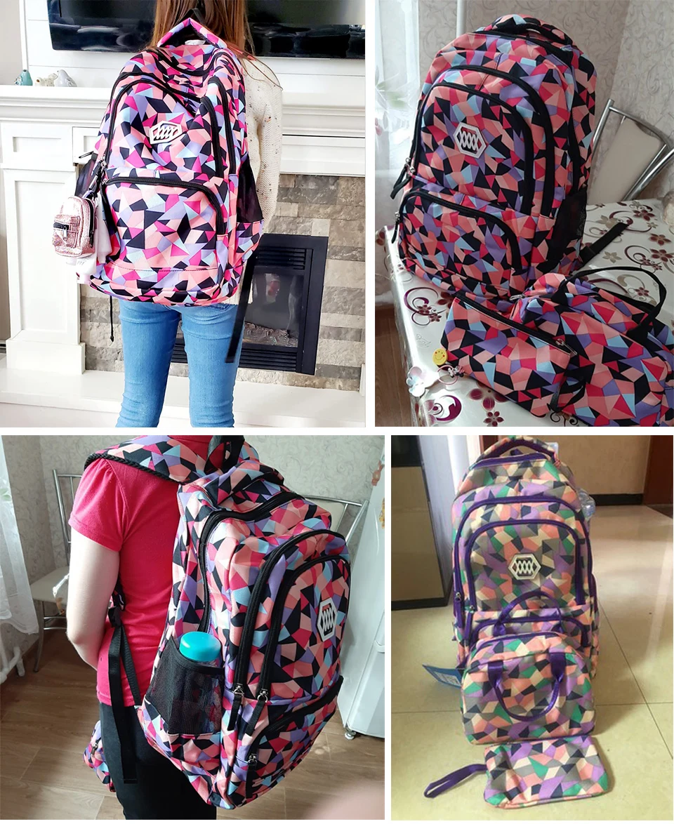 Хит продаж, сумка для начальной и младшей школы с геометрическим принтом для девочек, водонепроницаемый большой рюкзак, Набор детских сумок для книг, школьный ранец, рюкзак