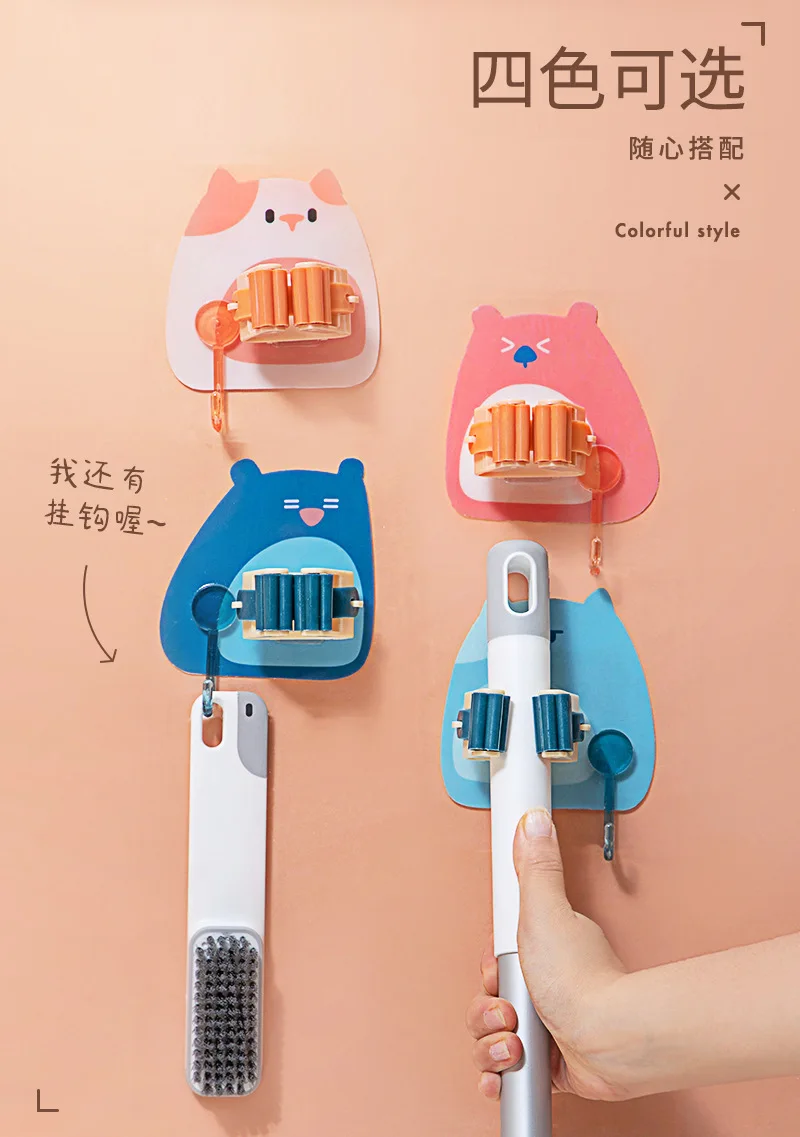 1 шт. мультфильм без перфорации зажим для швабры дома пластиковые настенные крепления милый мультфильм крепкие бесшовные швабры Чак для хранения стен