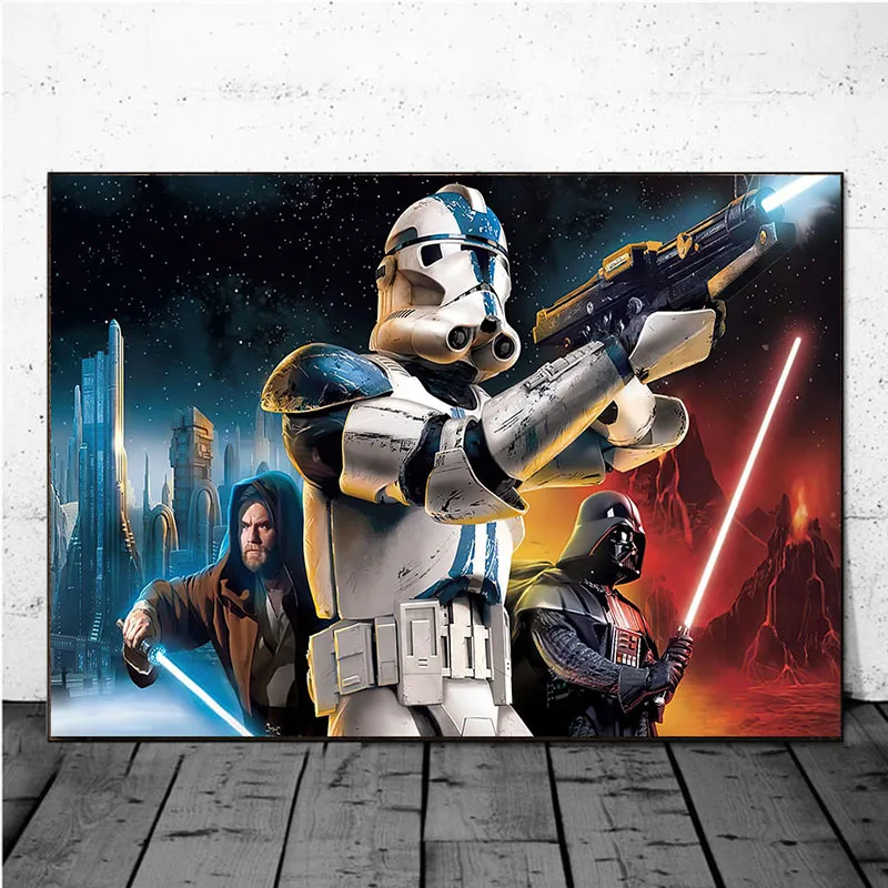 Плакаты и принты из мультфильмов Звездные войны, на холсте, с комиксами, мандалорец, Настенная картина для гостиной, украшение для дома