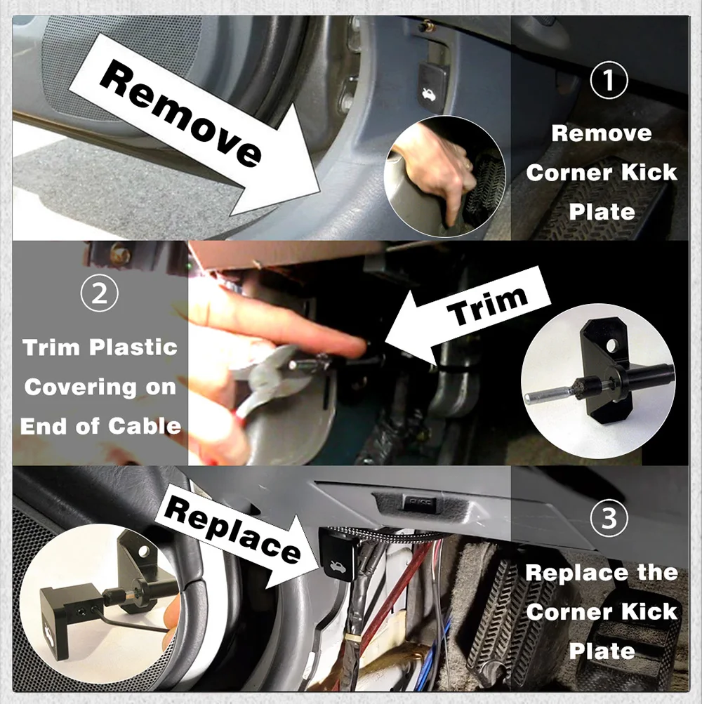 Эта запасная защелка для вытяжки является ремонтом для OEM пластиковой защелки, которая часто трескается и оторвется от конца кабеля.Эту сменную защелку можно установить в течение нескольких минут. Это требует удаления угловой пластиковой пластины. Затем около 1 "оставшегося пластика должны быть отделаны концом кабеля резцами для проводов. Наденьте его на конец кабеля, затяните 2 комплекта винтов, замените угловую пластиковую пластмассовую пластину, и вы закончите.