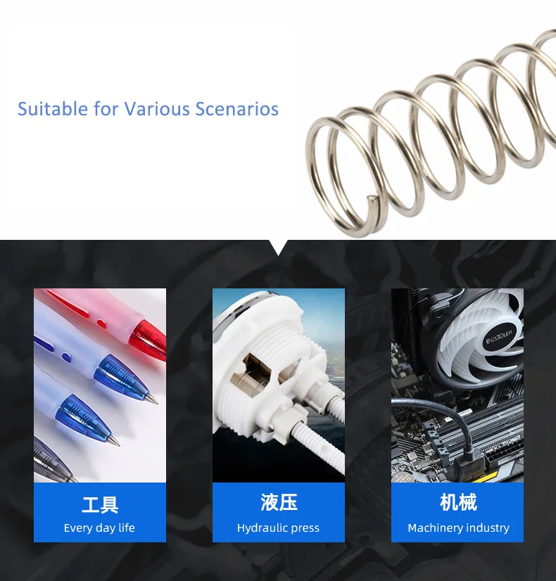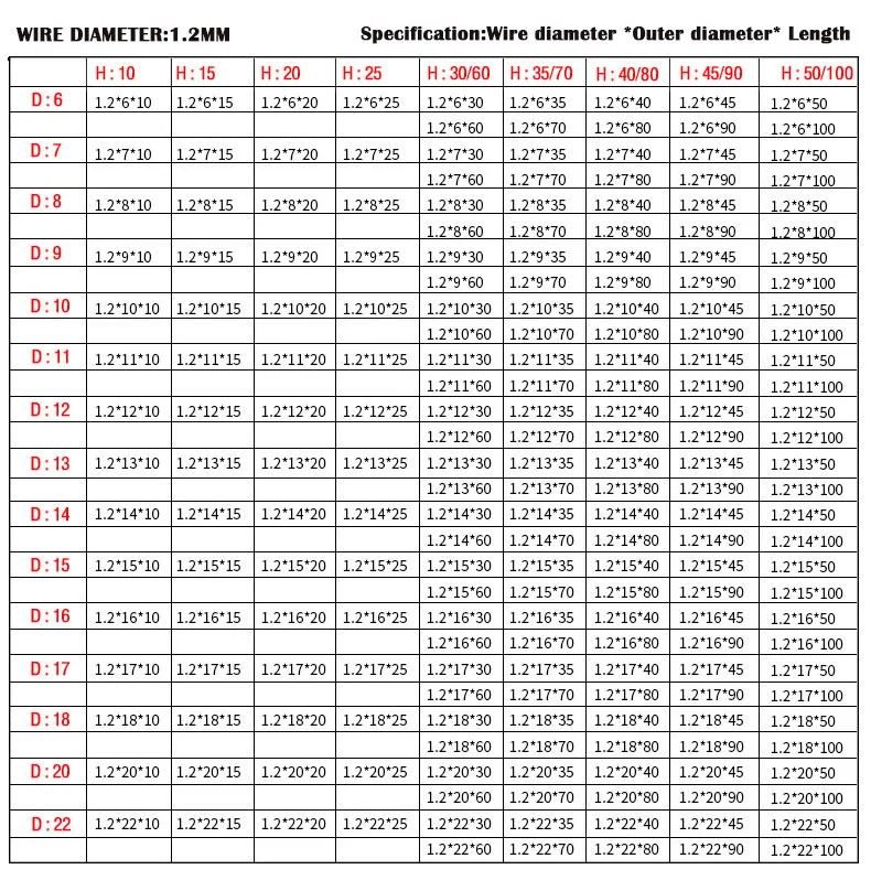 Пружина сжатия изготовлена из высококачественной пружинной стали, Анти-усталость, жесткий; Высокая прочность и долговечность. Различные размеры.
