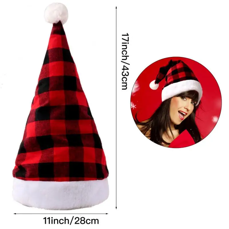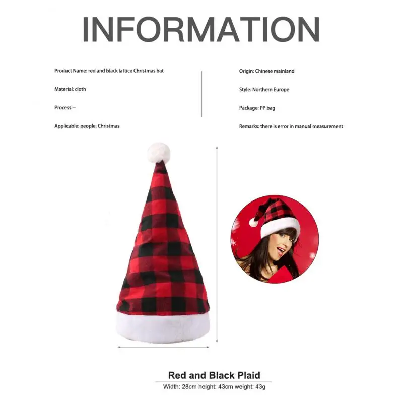 Шапка плюшевая Однослойная, красная, черная, в клетку, 2022