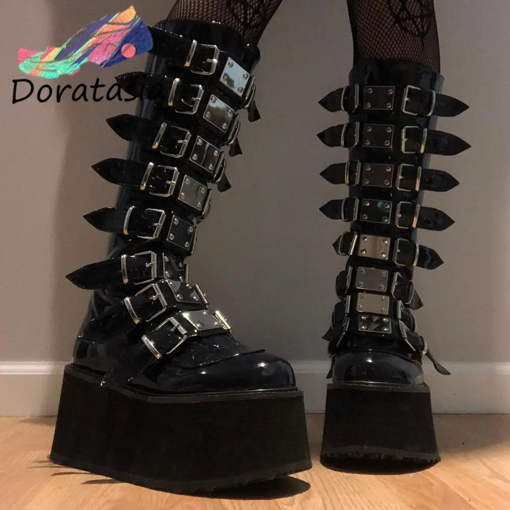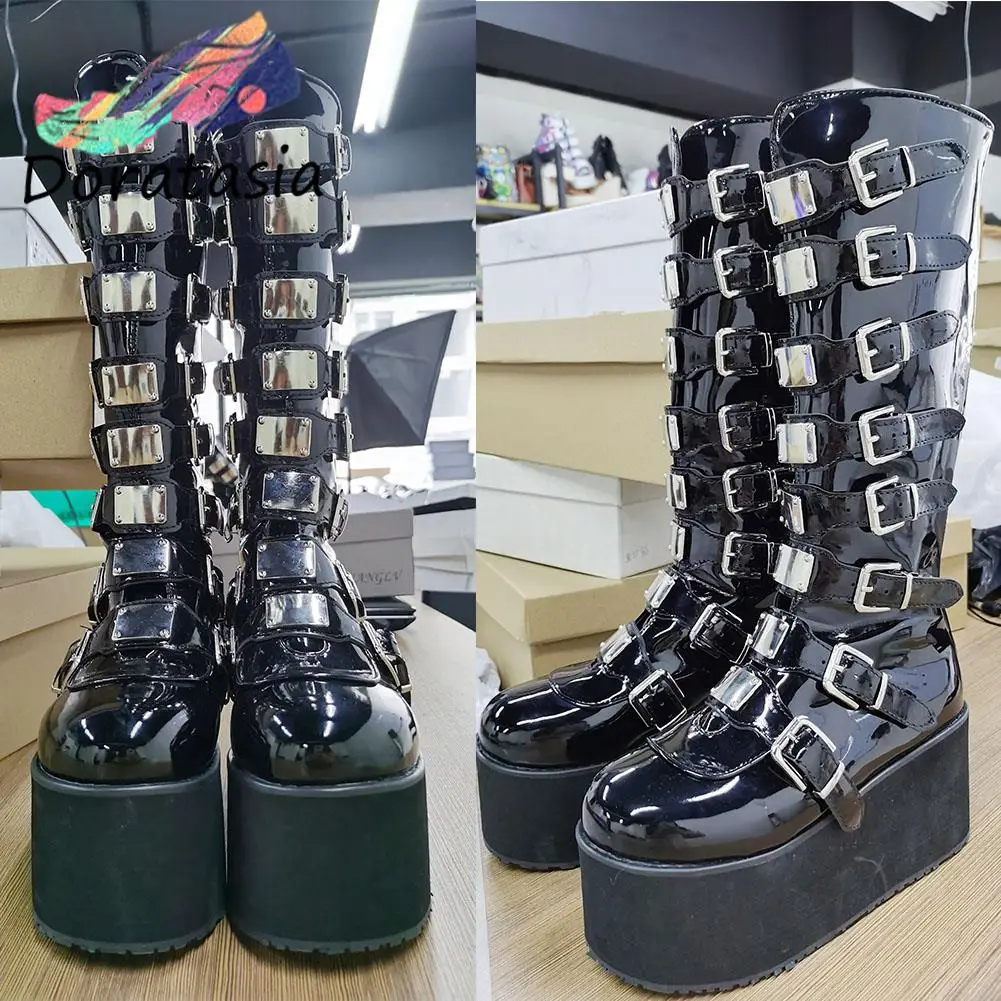 Женские ботинки на платформе DORATASIA, однотонные ботинки до середины икры на молнии с пряжкой, модная женская обувь на толстой подошве, 2021