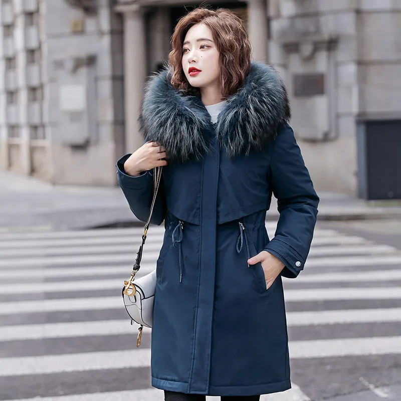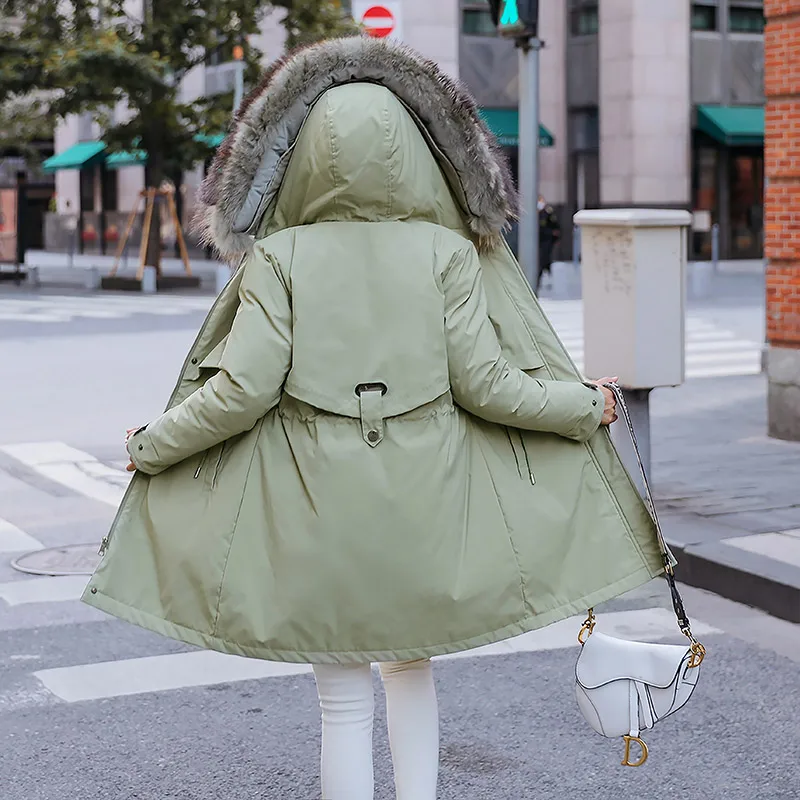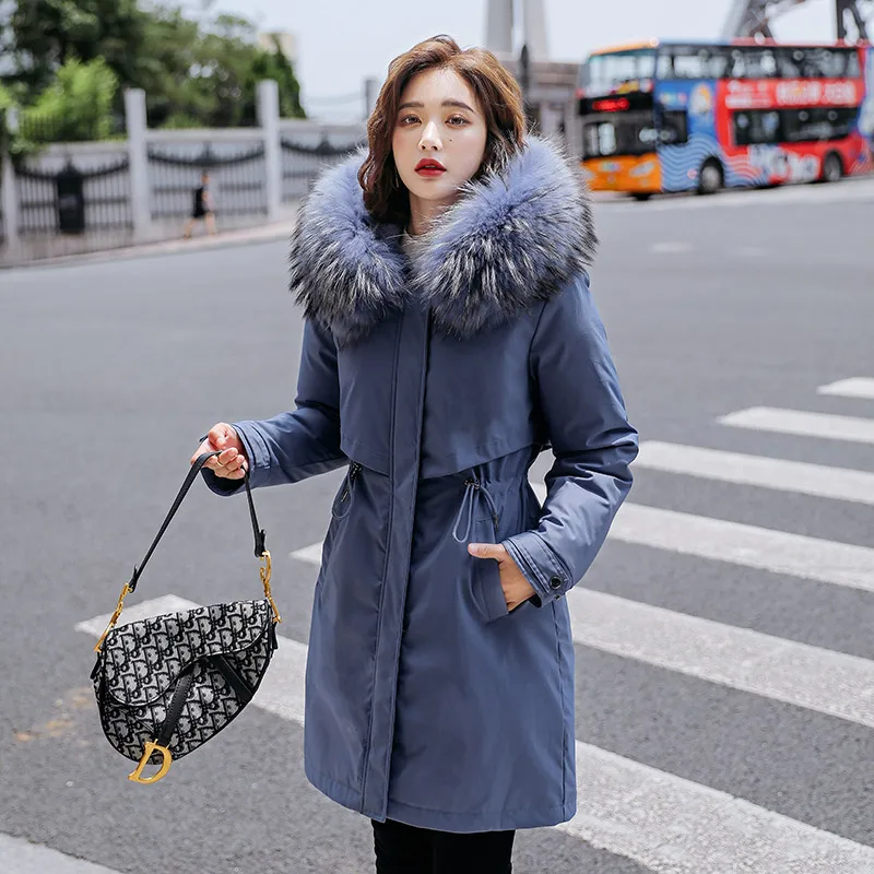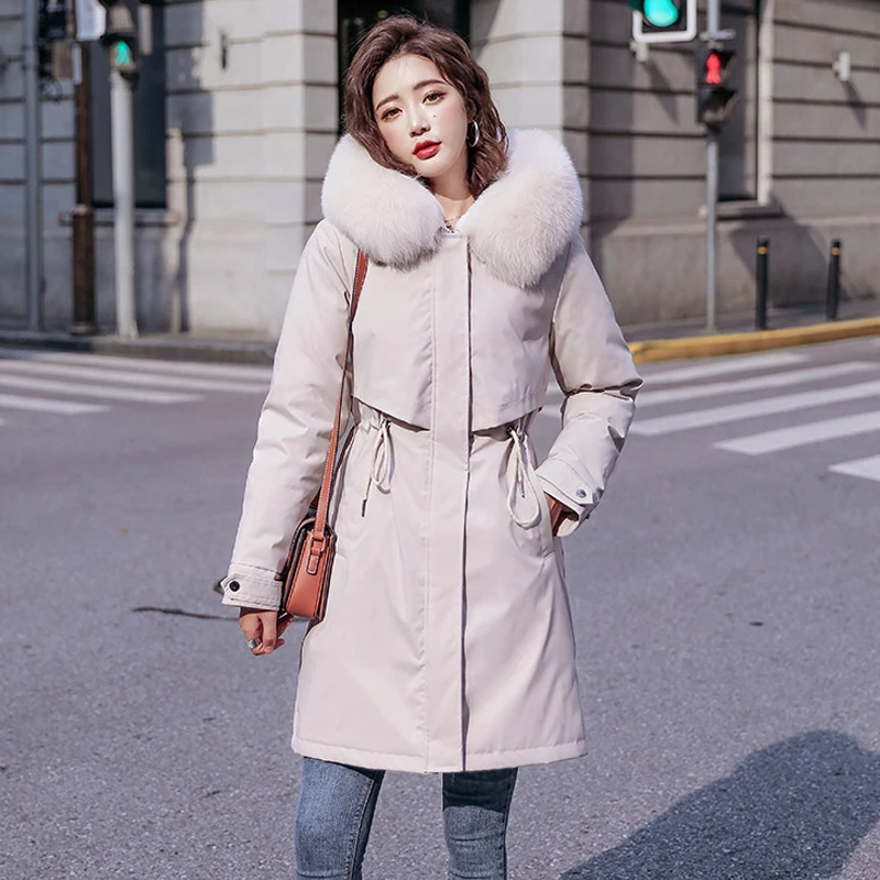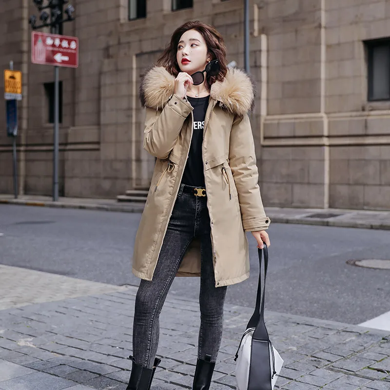 Женская зимняя куртка с шерстяной подкладкой, женское облегающее пальто с меховым воротником и хлопковой подкладкой, женская верхняя одежда