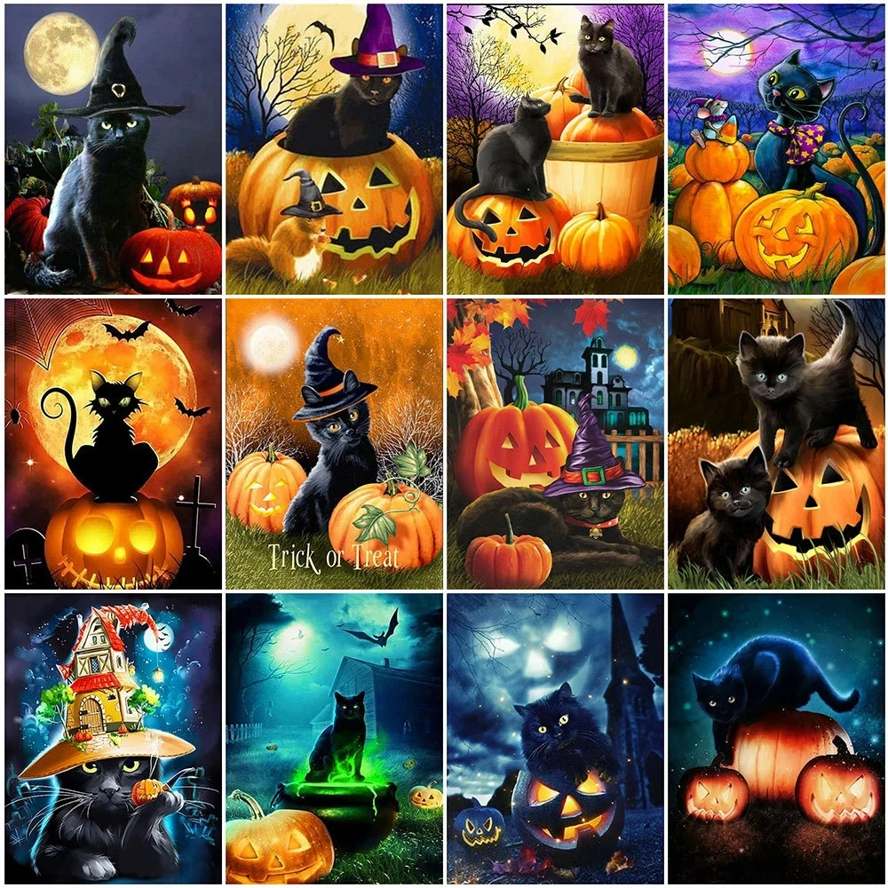 【Площадь сверла】:Полный квадрат/круглая Алмазная мозаика Хэллоуин кошка