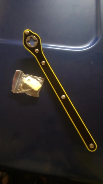 для тех, кто не понимает что в пакетике - это переходник, прикручивается к поворотному ушку домкрата (если штатное не подходит по размеру)