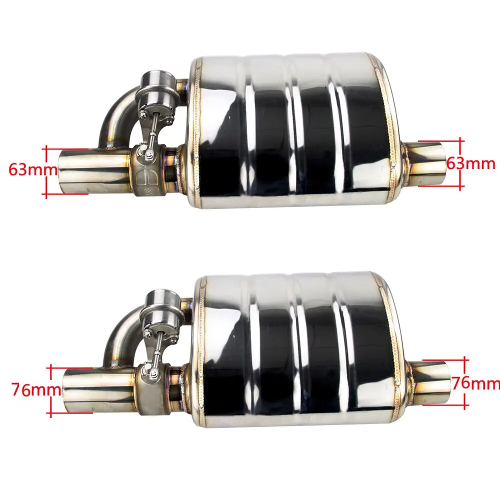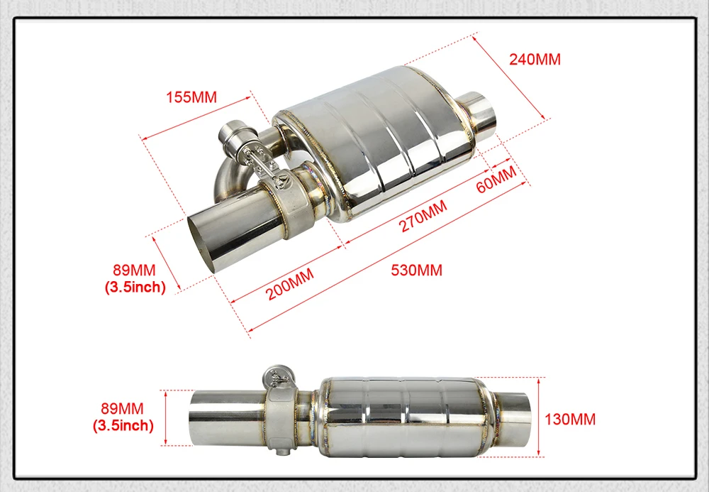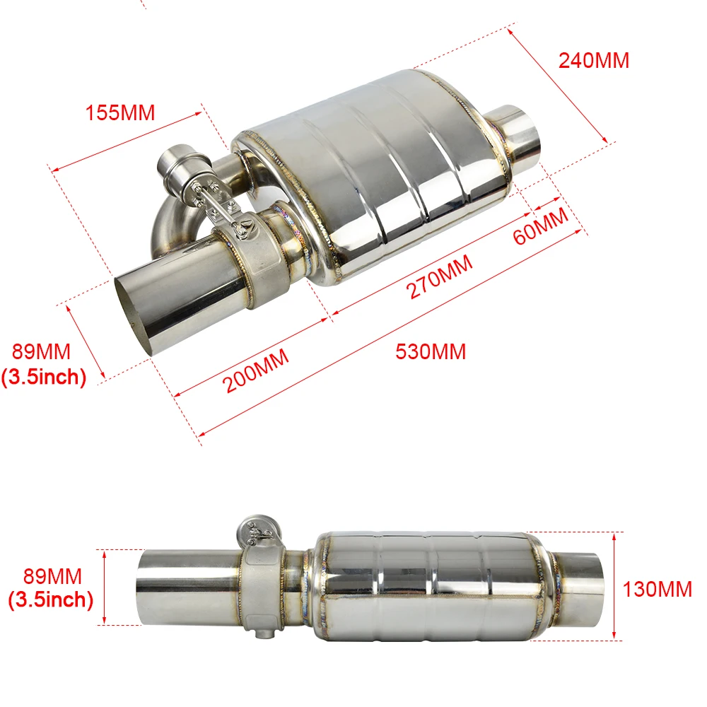 Это один кусок хромированного нержавеющего глушителя с двойными круглыми наконечниками, он изготовлен из 100% высококачественной T-304 нержавеющей стали.Этот глушитель подходит для большинства автомобилей с 2,5 "/3"/3,5 "на входе (обычно для нетурбо двигателей и выхлопных газов с 2,5"/3 "/3,5" на входе).Получение большего количества воздуха в ваш двигатель и больше выхлопа является ключом к производительности двигателя.Именно там глушитель имеет большое значение как наконечник выхлопной системы.Большой наконечник выхлопа означает более высокую эффективность потока воздуха, что предотвращает обратное давление, которое происходит в общей выхлопной системе.Когда цилиндрам не придется бороться друг с другом, чтобы изгнать их выхлопную систему, они могут поставить больше энергии через колеса с минимальными ограничениями, и ваш двигатель будет выполнять свой потенциал.Этот глушитель увеличится примерно на 8%-10% лошадиных сил и обеспечит плавный глубокий тонус.Уровень звука варьируется в зависимости от диаметра трубопровода и типа резонатора.Двойной плоский наконечник из нержавеющей стали хромированный глушительОдин плоский наконечник из нержавеющей стали хромированный ГЛУШИТЕЛЬ ПОДХОДИТ с выпускным отверстием клапана комплект"Закрыть" клапан настройки для более низкого уровня звука, который звучит как стоковый глушитель.Установка клапана «открыть» для более высокого уровня звука.Глушитель обеспечивает глубокий и гладкий тон.Улучшает внешний вид и стиль вашего автомобиля.Отличное обновление для вашего автомобиля.Размеры и материал: