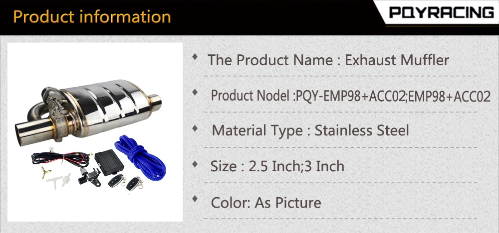 Нержавеющая сталь2,5 "/3"/3,5"Вкл/Выкл наконечник на один глушитель сброс клапана выхлопа с беспроводным пультом дистанционного управления набор PQY-EMP98/99 + ACC