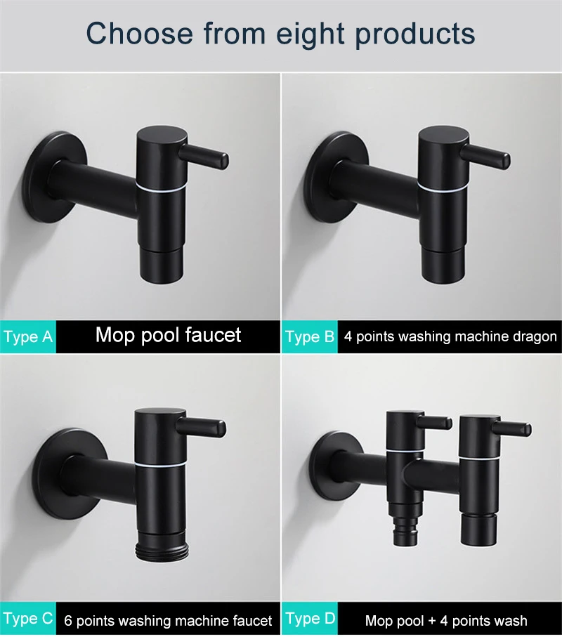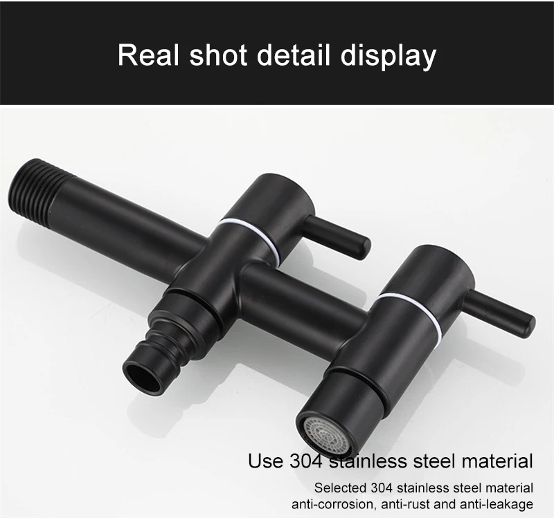 Черный смеситель из нержавеющей стали для ванной комнаты, кран для стиральной машины, смесители для швабры, угловой смеситель для туалета, двойное использование