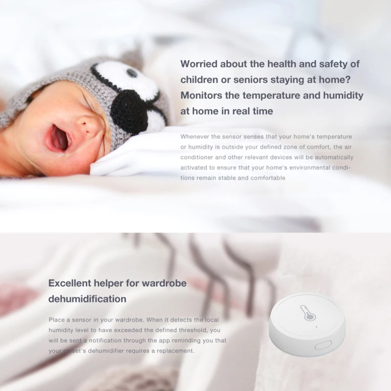 4. Новые добавлены с технологией компенсации температуры с Умной связью сцены с вашим кондиционером и увлажнителем воздуха, предлагая вашему дому с наиболее удобной температурой и влажностью, чтобы наслаждаться нашей умной жизнью.