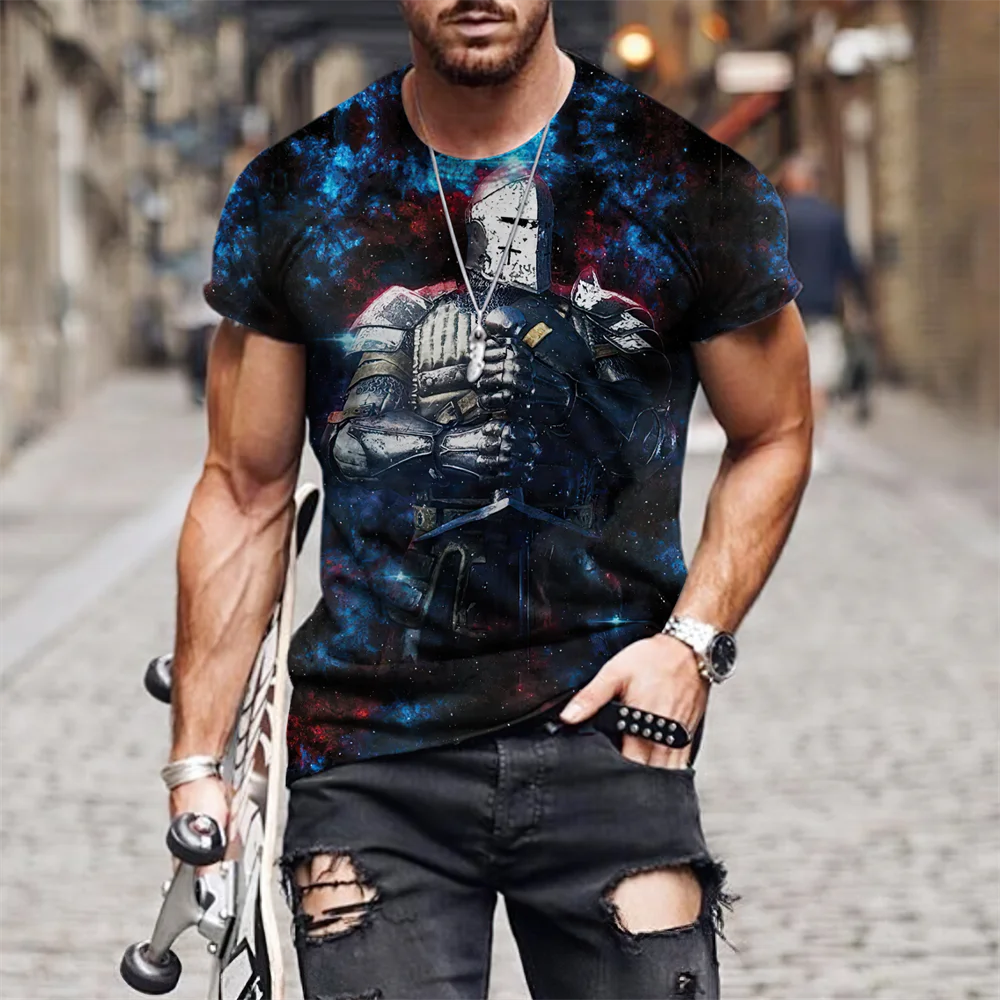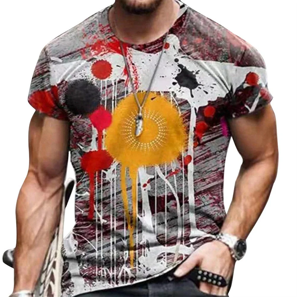 Мужская футболка с 3D-принтом, круглым вырезом и коротким рукавом