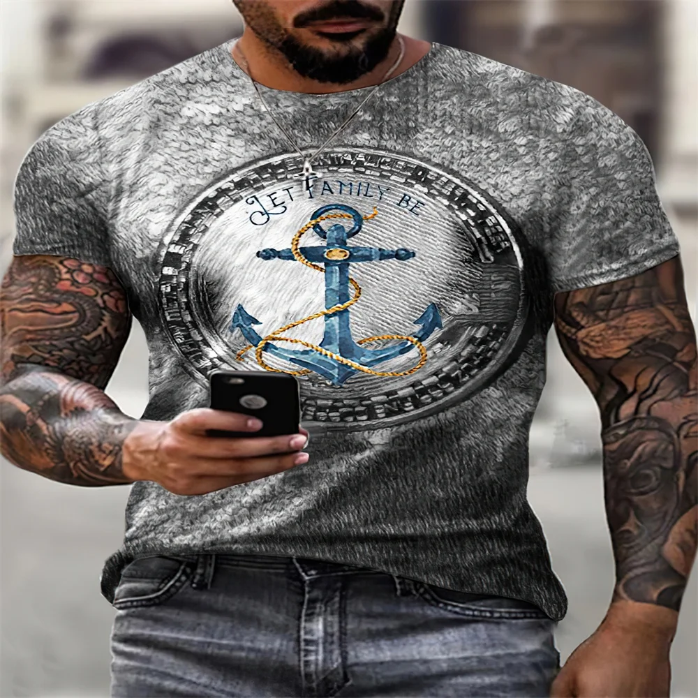 Футболка мужская с круглым вырезом, коротким рукавом и 3D-принтом морского якоря, 130-6XL