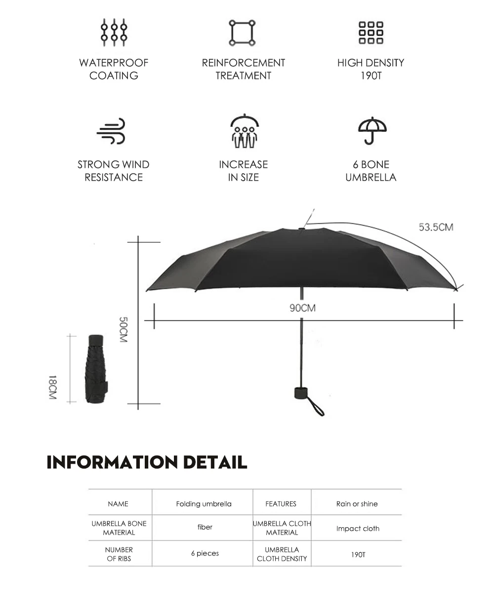 Зонт складной, компактный, водонепроницаемый, с защитой от ультрафиолета