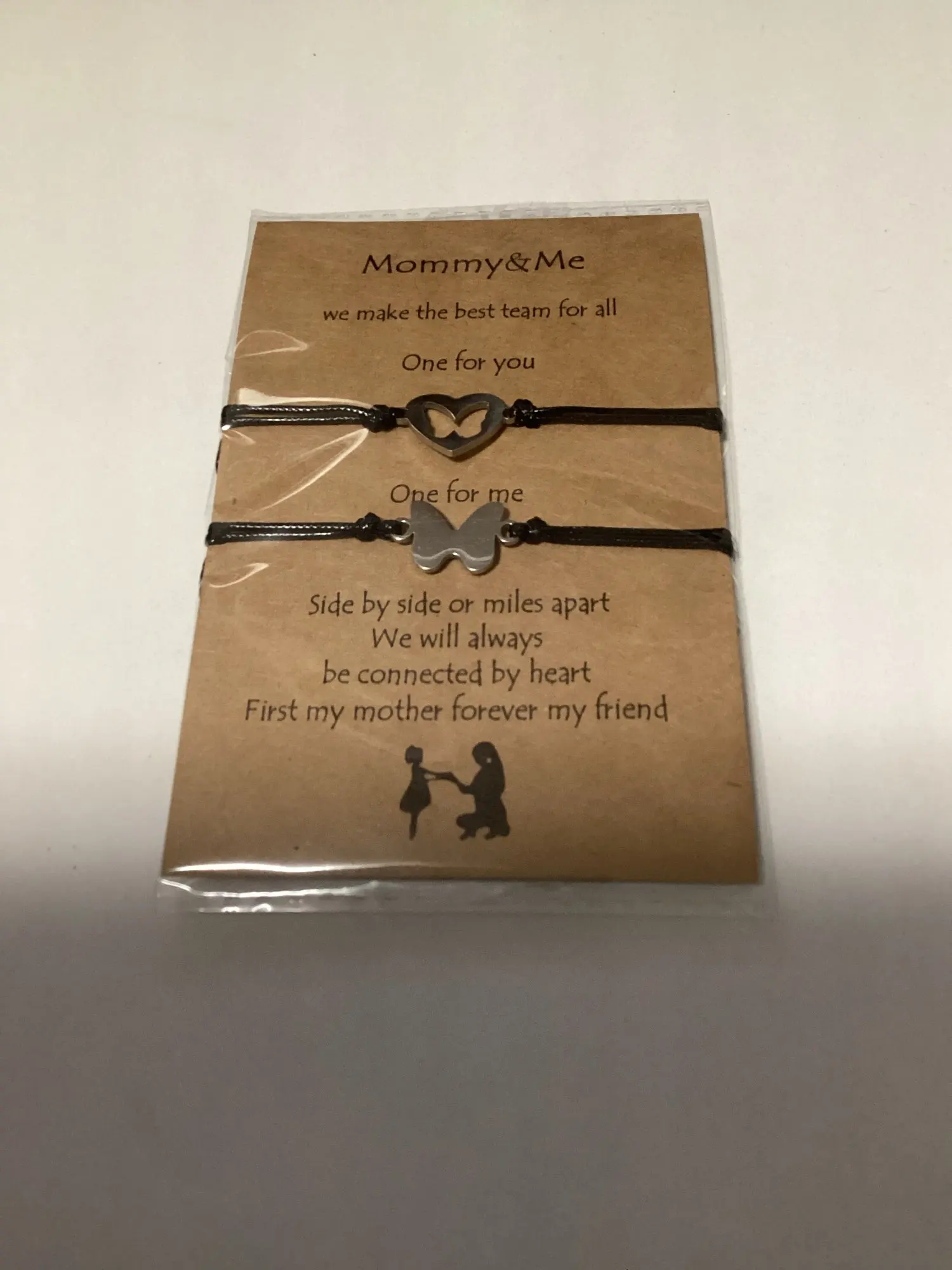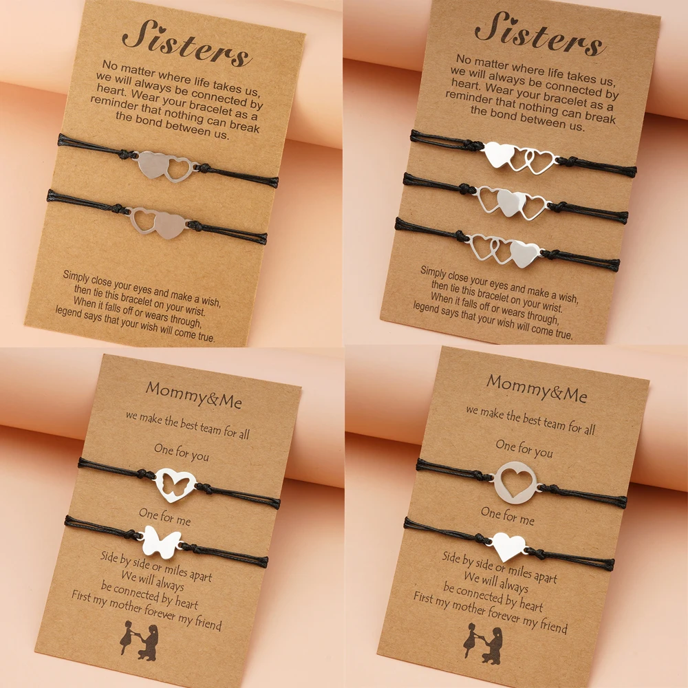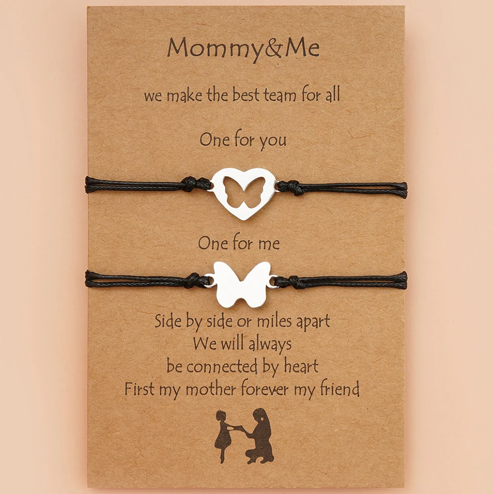 Браслеты для матери и дочери 2 шт., ювелирные изделия из нержавеющей стали с сердечками и бабочками, подарок на день матери и дочери