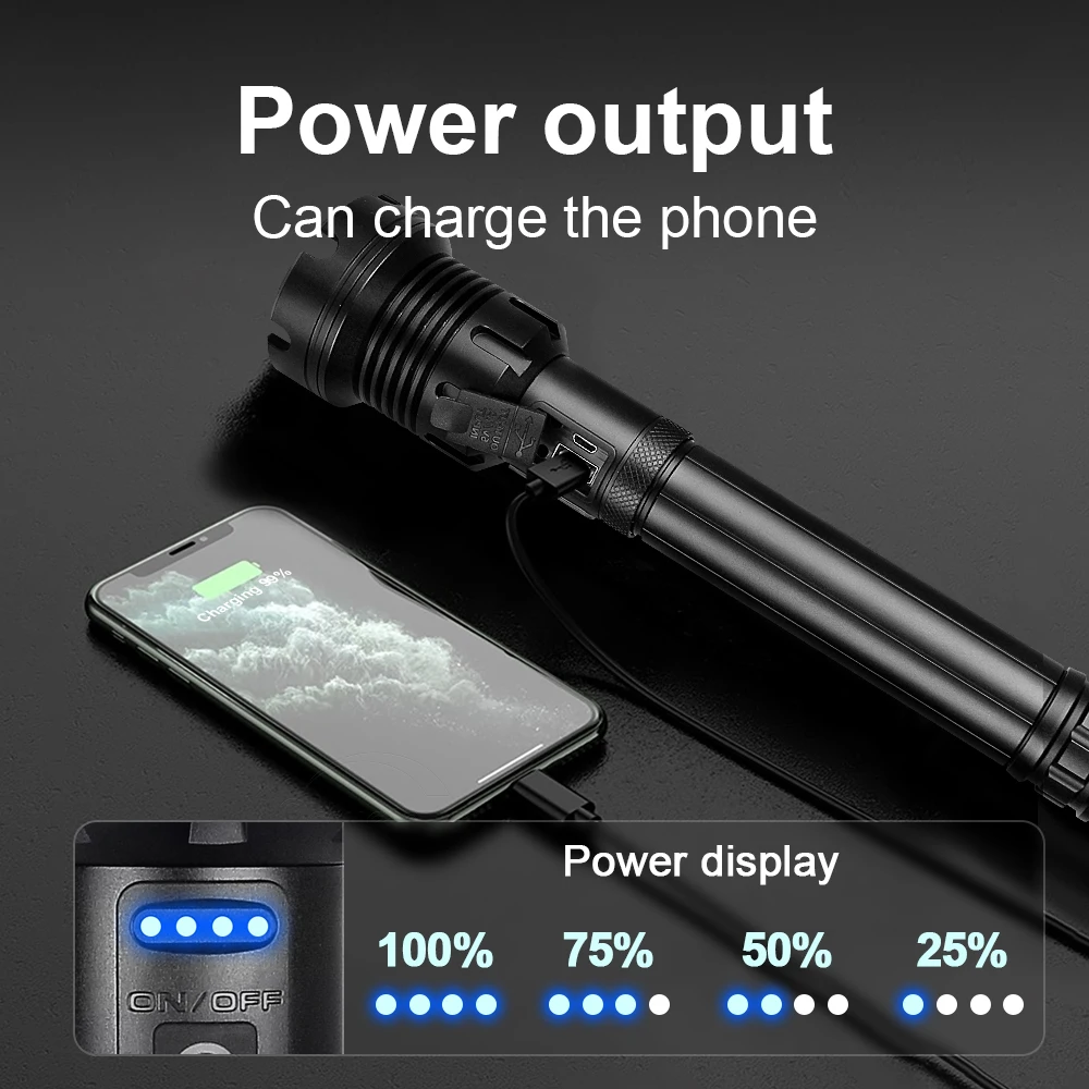 Супер мощный ful XHP199 светодиодный светильник для вспышки высокой мощности XHP90 светодиодный фонарь светильник перезаряжаемый Тактический светильник для вспышки 18650 26650 Usb ручная лампа