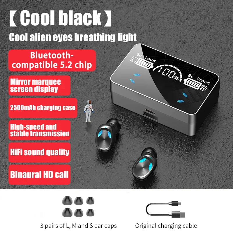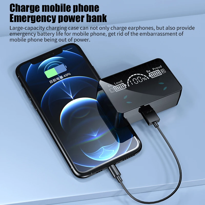 Зарядный отсек разработан с цифровым дисплеем, который может помочь проверить остающееся электричество зарядного отсека и левый и правый наушники в любое время.