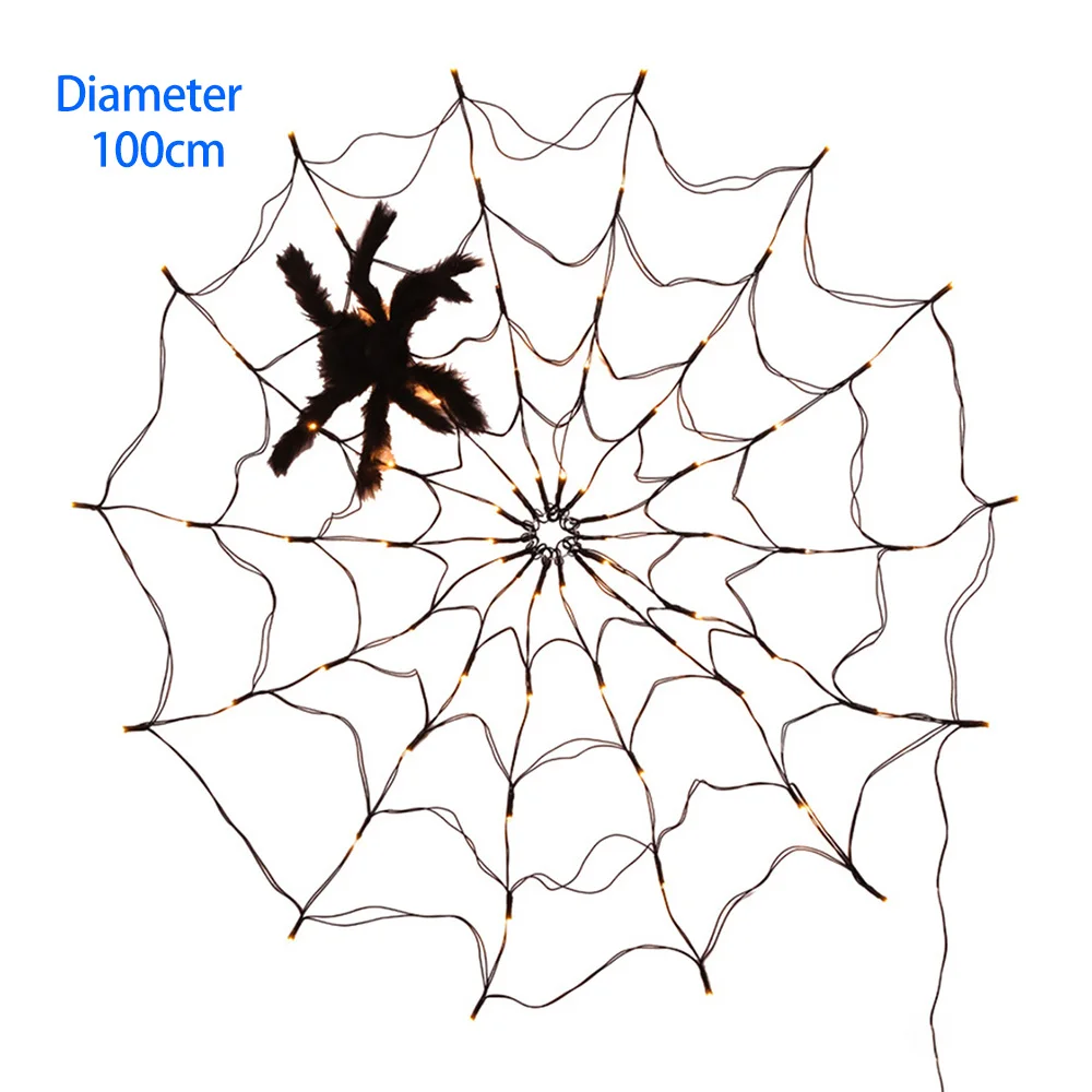 1. 70 оранжевых светодиодных ламп с 8 режимами яркости. Они идеально подойдут для украшения вашего дома на Хэллоуин и станут частью вашей праздничной традиции.2. 100 см диаметр паутины, 70 теплое белое светодиодное освещение, 1 шт. черный паук 30 см3. Подходит для окон, дверей, углов и перил для создания идеальной жуткой сцены Хэллоуина!4. Украсьте вашу стену и двор/двор, изгородь и забор, веранду и патио. Идеально подходит для Хэллоуина, вечерние, маскарадные, вечерние костюмы, бар и Дом ужасов5. Источник питания: пульт дистанционного управления USB/пульт дистанционного управленияУпаковочный лист