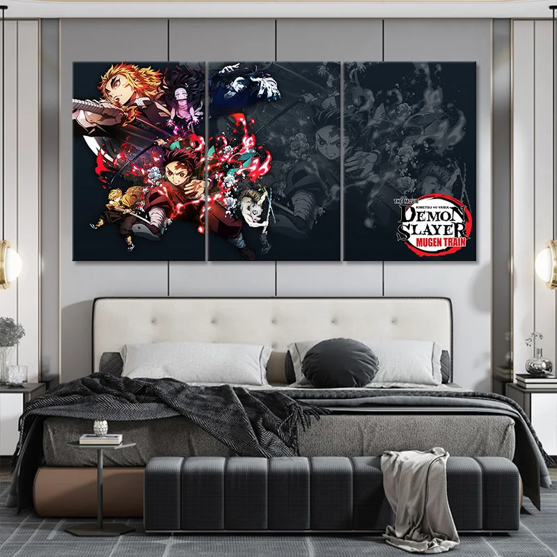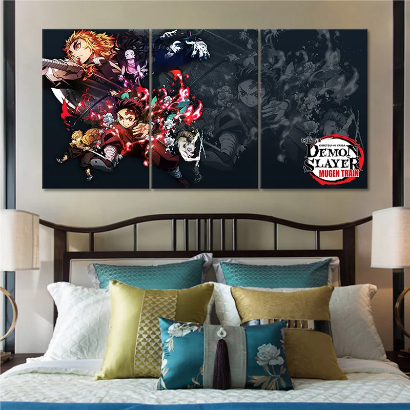 Картина на холсте из мультфильма рассекающий демонов киметсу нет яиба, поезд Муген, домашний декор, аниме плакат на стену, роспись, подарок