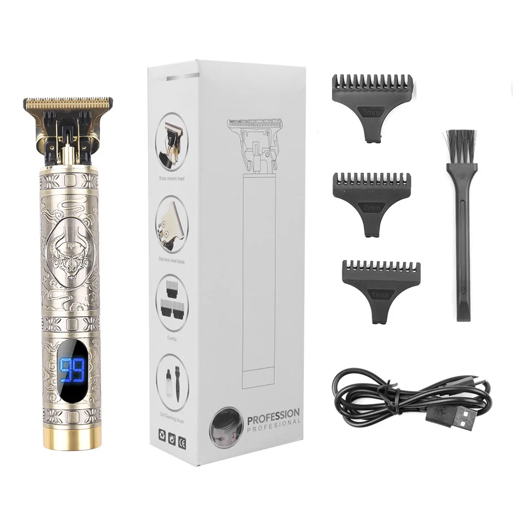 Электрический триммер для волос с зарядкой от USB T9, машинка для стрижки волос, Беспроводная Бритва 0 мм, Мужская Парикмахерская, машинка для укладки волос, Прямая поставкаОписание:Керамическое лезвие из титановой стали, острое, прочное, высокая эффективность резки.Т-образная режущая головка, подвесная конструкция, безопасная и быстрая.Низкий уровень шума и высокая мощность.Универсальное напряжение.Обратите внимание:ЖК-дисплей показывает мощность продуктаХарактеристики:Применимые люди: всеСпособ зарядки: USB-кабель для передачи данныхПункты продажи продукта: цифровой ЖК-дисплей, металлический корпус, Ретро стиль, резьба масляная головаПосылка1 * машинка для стрижки волос3 или 4 * ограничивающие гребни (как показано на рисунке)1 * Чистящая Щетка1 * Инструкция1 * USB-кабель для зарядки1 * упаковочная коробка (некоторые продукты входят в комплект)